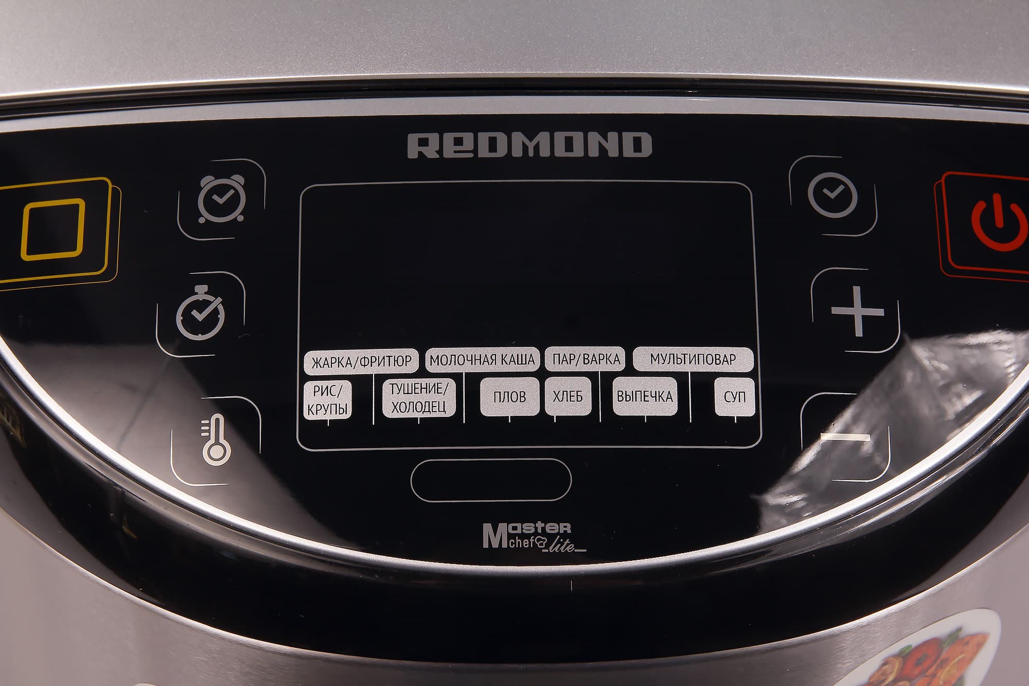 Управление мультиваркой осуществляется с помощью восьми сенсорных кнопок и дисплея с красными светодиодными индикаторами.
