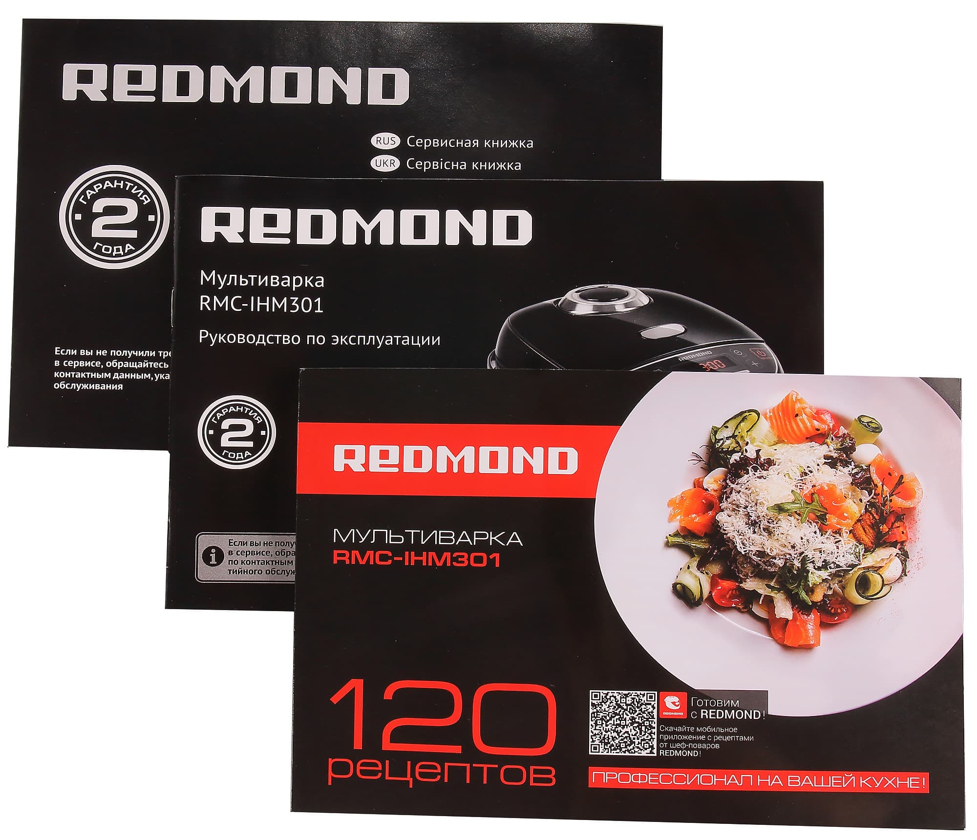 Помимо инструкции к мультиварке также прилагается книга, содержащая 120 рецептов на все случаи жизни. Каждый рецепт снабжен инструкцией по приготовлению и полезным советом, а также цветной фотографией. Те, кто уже сталкивался с продукцией Redmond, наверняка узнают многие из представленных блюд.