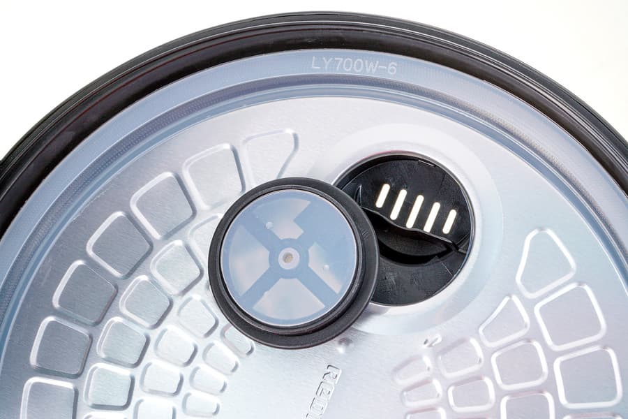 Также периодически необходимо очищать паровой клапан, который находится на крышке. Клапан разборный, для проведения очистки можно снять с него резинку. Сама внутренняя часть крышки несъемная.