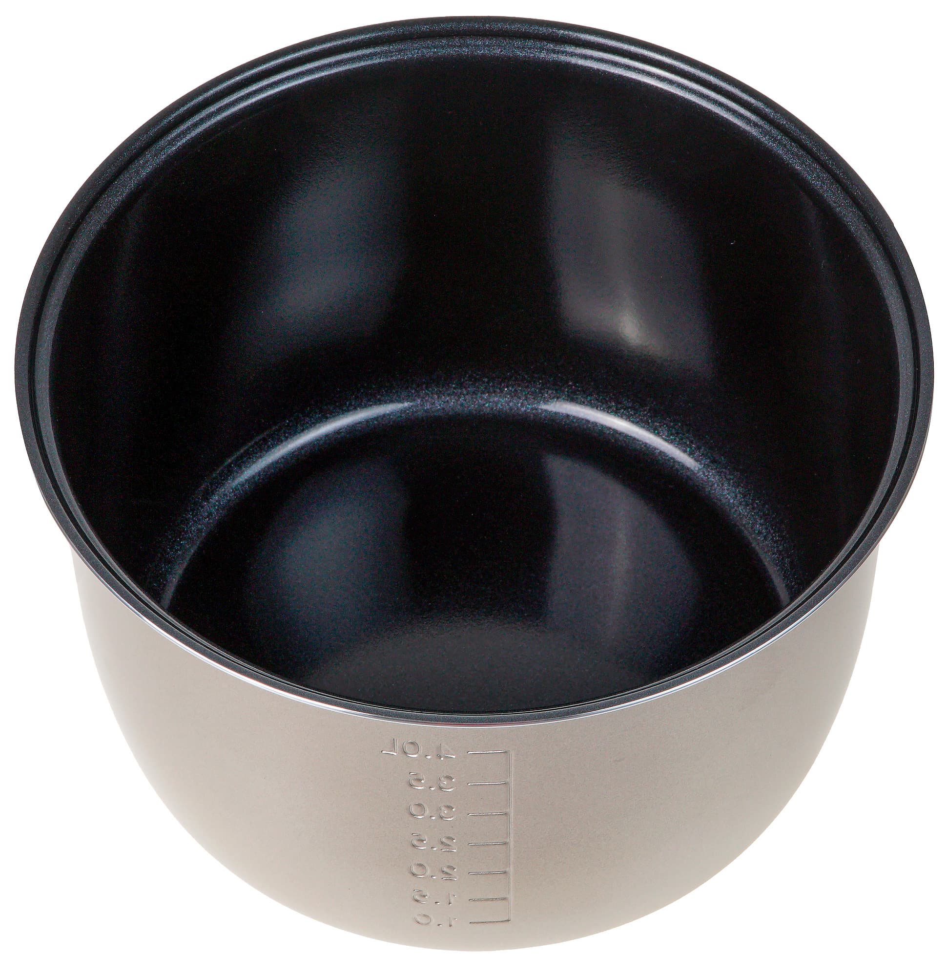 Внутрь прибора вставляется чаша с антипригарным покрытием. Чаша в комплекте достаточно легкая, простой формы, с качественным покрытием. На внутренней стороне имеет шкалу. Максимально допустимый объем приготавливаемых продуктов — 4 литра.