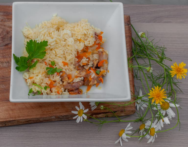 Результат, в принципе, был не плох, хотя до настоящего плова не дотягивал. Скорее, это был рис с овощами и мясом, но вполне вкусный.
