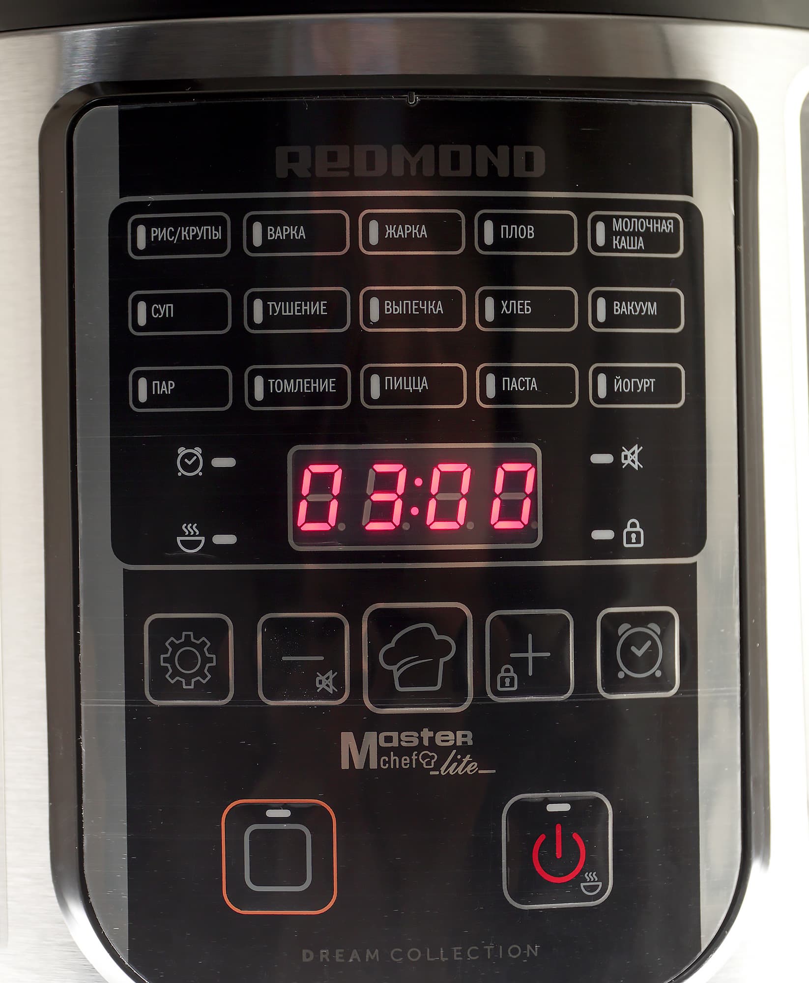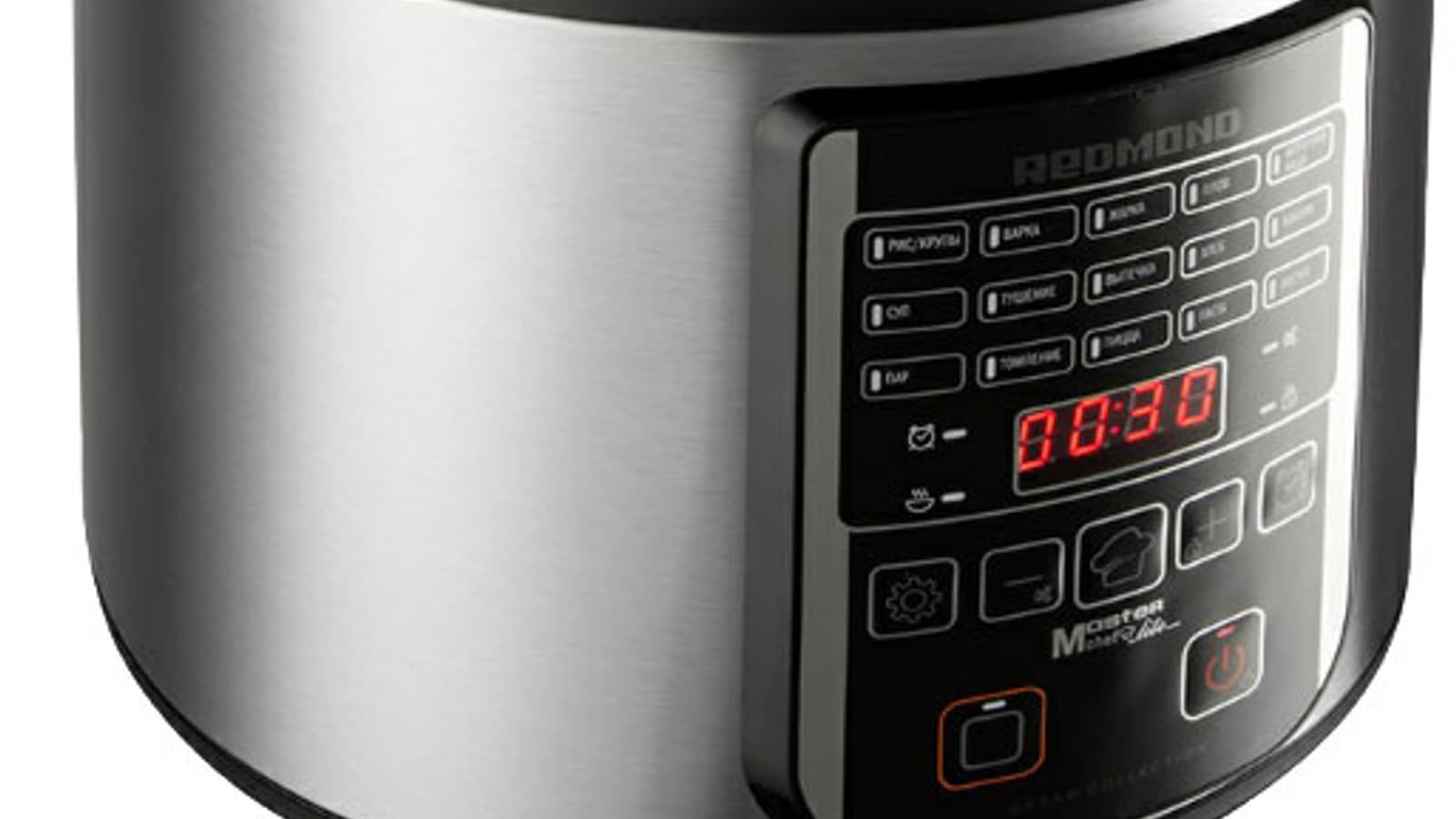 Спереди у мультиварки находится панель управления, состоящая из кнопок и светодиодного дисплея.