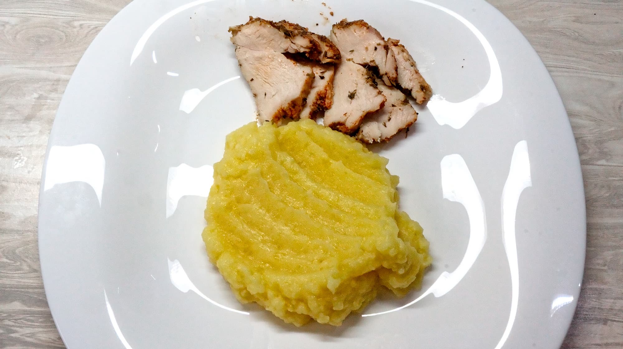 При необходимости — регулируем консистенцию пюре, добавляя горячее молоко.