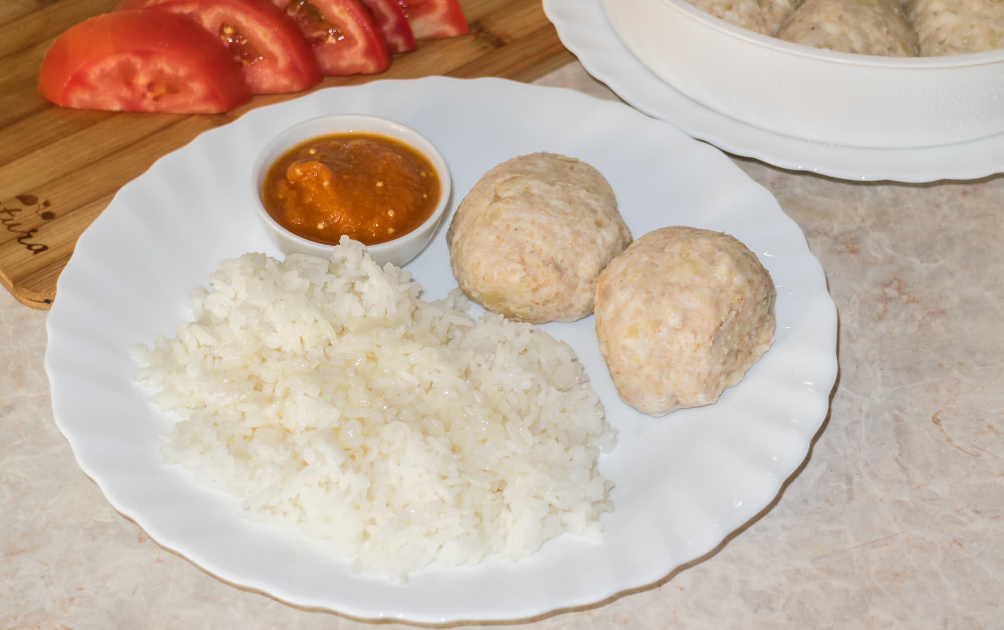 Котлеты куриные на пару́ с рисом (рецепт №63 из комплектной книги)