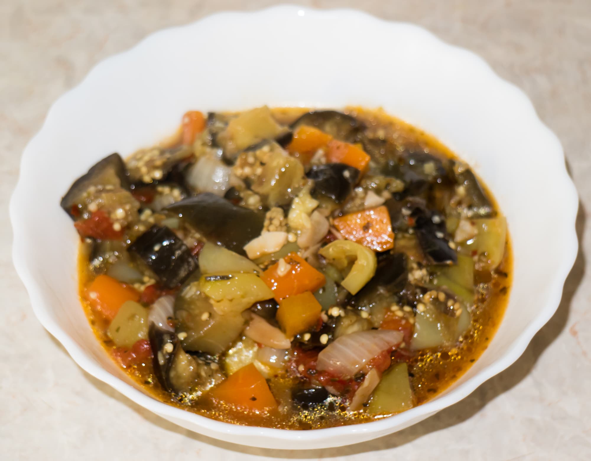 Выложили все овощи, посолили, добавили специй, паприки, зелени, сухого чеснока. Включили программу «Тушение» на 45 минут. По завершении получили отличное сытное и ароматное блюдо.