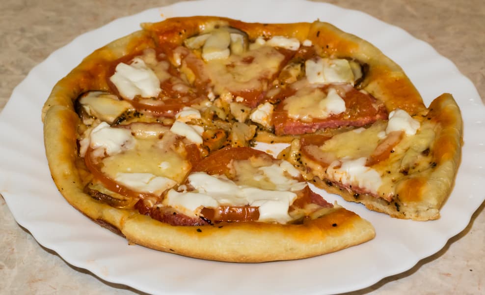 Готовили в программе «Пицца», полностью доверившись заводским установкам. Спустя 25 минут извлекли из чаши готовое блюдо. Тесто полностью приготовилось, дно поджарилось и хрустело, начинка прогрелась, сыр расплавился. Отличный размер на одного человека, довольно быстрое приготовление и возможность сделать предварительную заготовку делает это блюдо весьма привлекательным даже без оценки его вкусовых преимуществ.