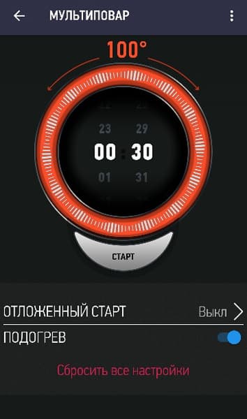 - удобная реализация функции отсрочки старта — требуется лишь задать время, к которому блюдо должно быть готово и нажать кнопку ОК;