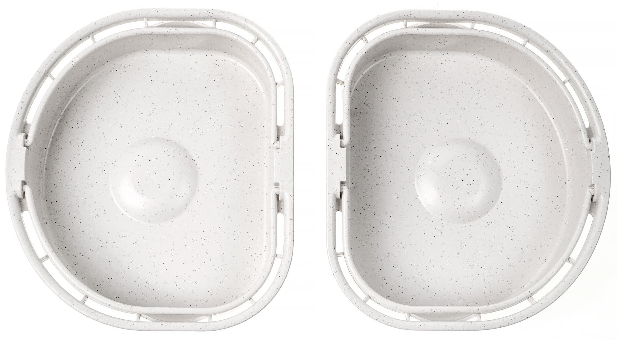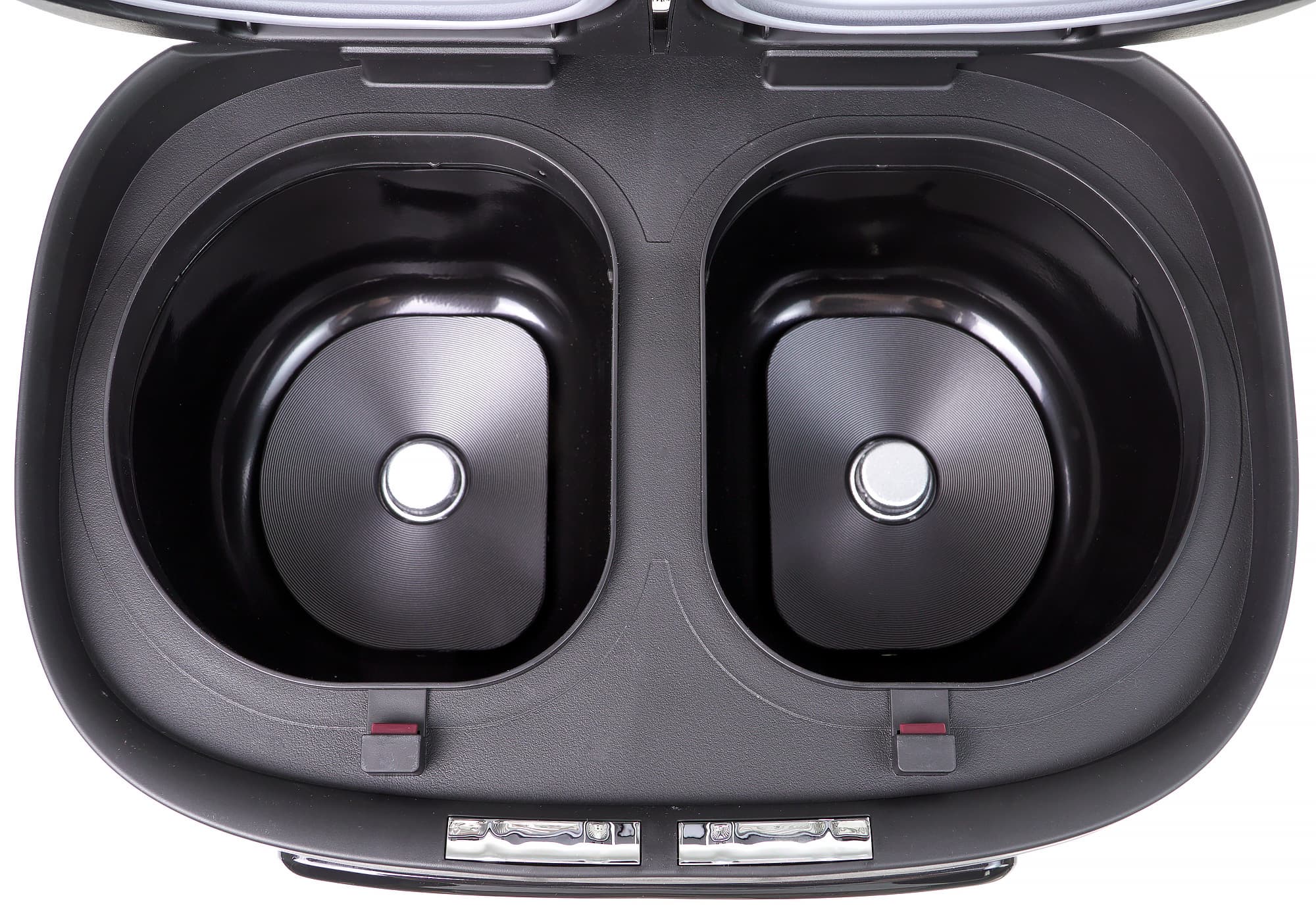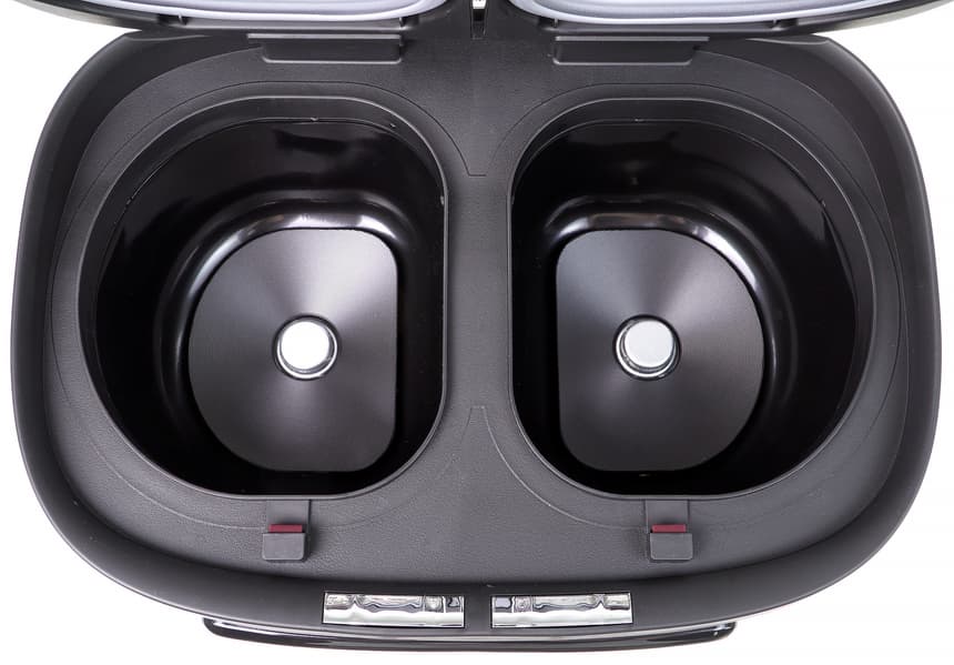 Внутрь корпуса вставляются две емкости, расстояние между ними довольно большое, вынимаются они удобно. емкости взаимозаменяемы.