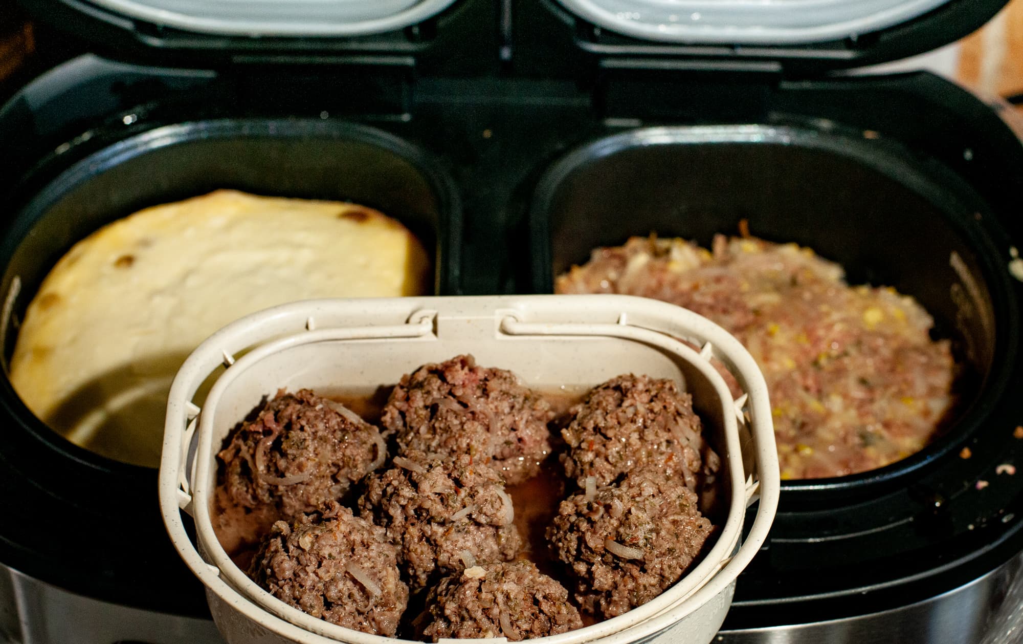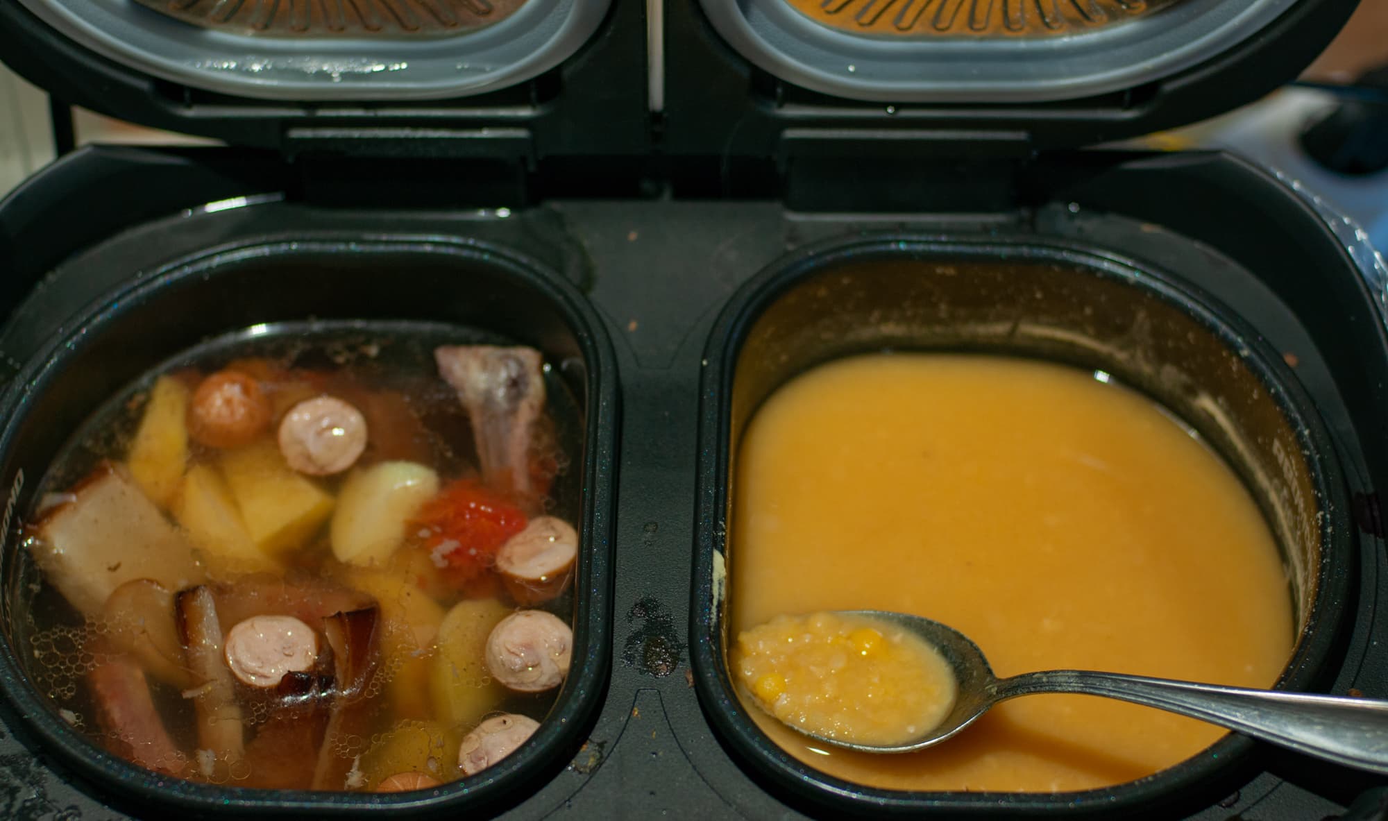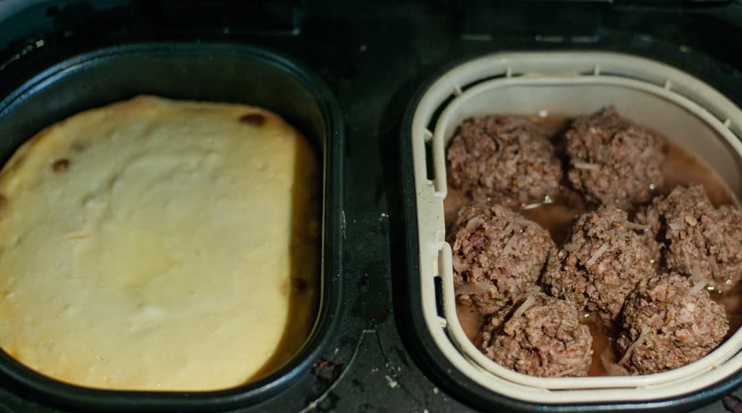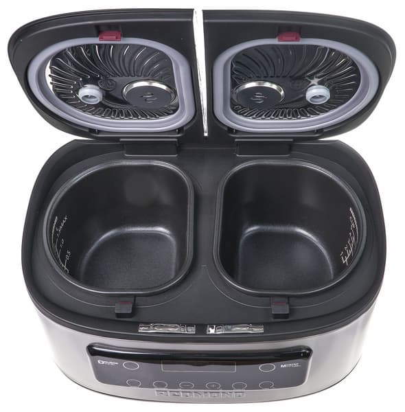 В практических тестах мы ставили перед собой задачу прежде всего понять целесообразность разделения большой емкости на две отдельные. Насколько удобно будет готовить параллельно в двух емкостях, не будут ли смешиваться запахи и портить какое-то блюдо, есть ли какие-то нюансы в приготовлении двух блюд одновременно.