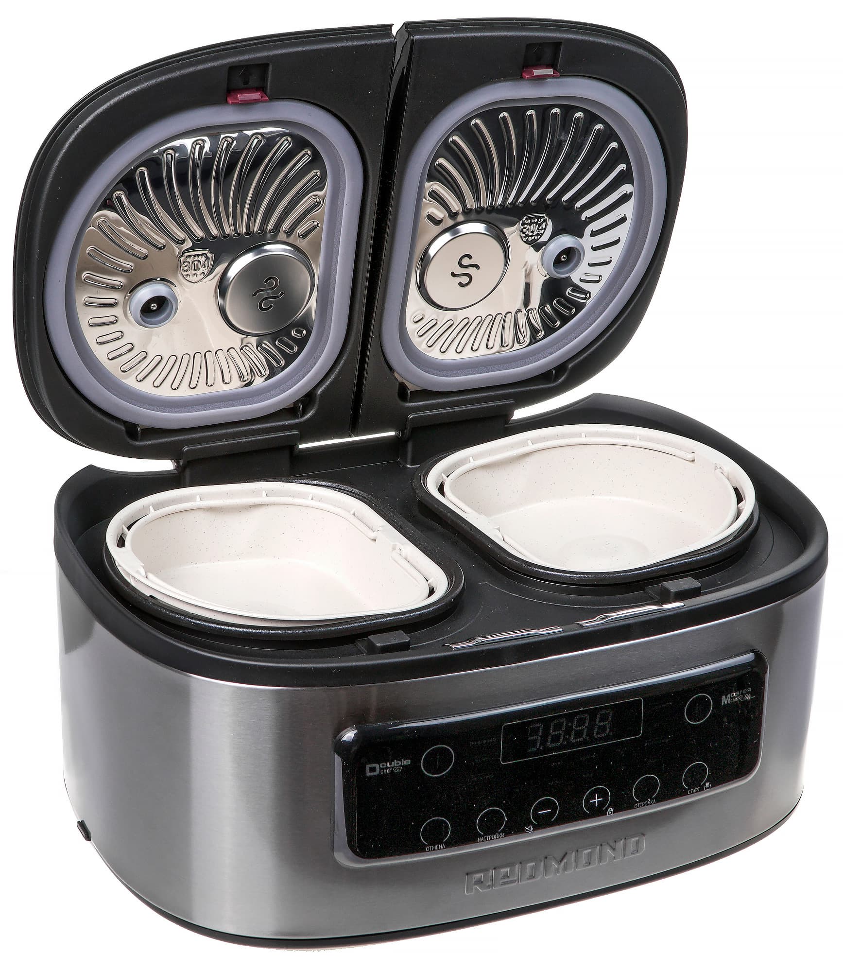 На наш взгляд, Redmond RMC-MD200 — очень достойный и продуманный прибор, практически лишенный недостатков. Благодаря двум независимым чашам устройство может готовить два совершенно разных блюда одновременно без потери качества. Объем в 3 литра на две чаши недостаточен на большую семью или компанию, но вполне подойдет для постоянного приготовления на 1—3 человек.