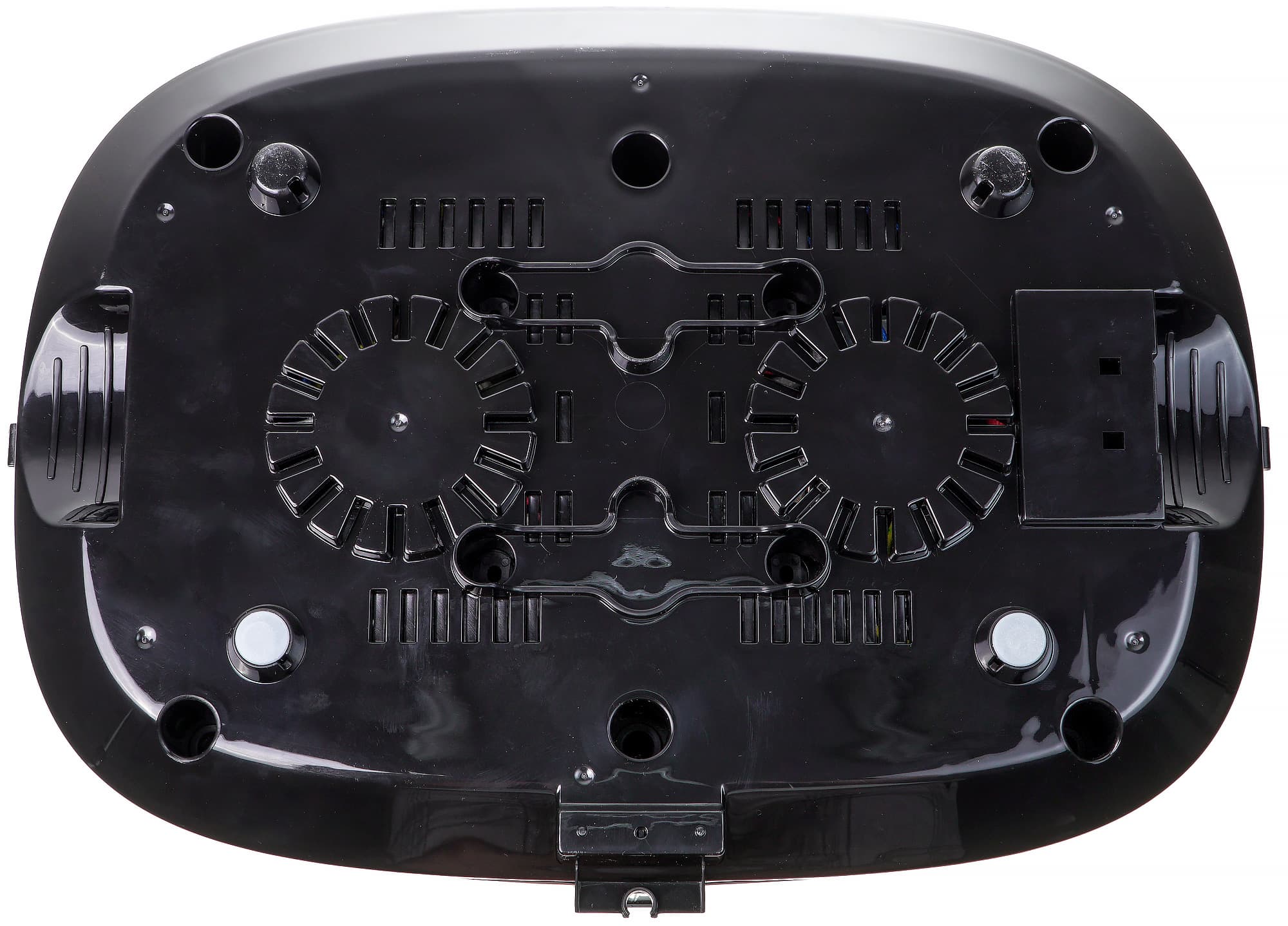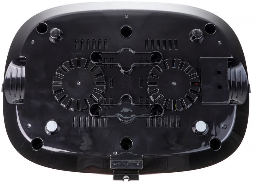 Снизу корпуса располагаются вентиляционные отверстия, разъем для шнура предусмотрен сбоку справа. Корпус стоит на четырех прорезиненных ножках.