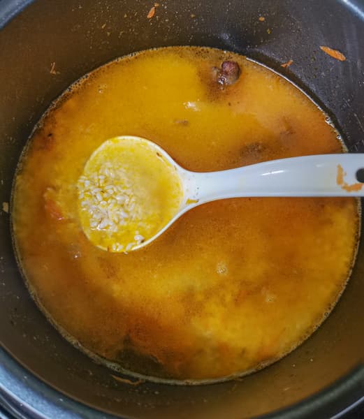 Выставили программу томления на 1 час. Через час слили половину получившейся жидкости, добавили сахара. Перемешали.