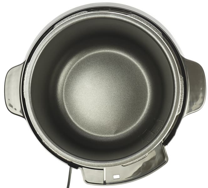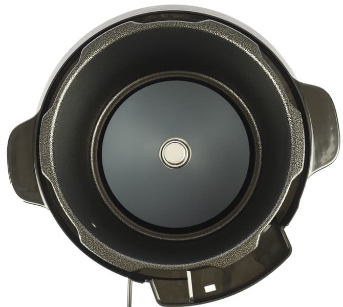 Чаша прибора массивная, с хорошим антипригарным покрытием, без ручек. Общий объем чаши 5 литров, полезный 3,5 литра, высота до края бортика 135 мм. Внутри и снаружи нанесена мерная шкала.