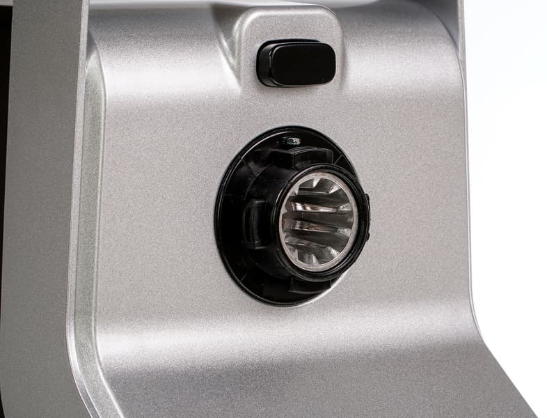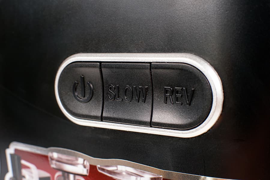 За управление мясорубкой отвечает блок кнопок на боковой стороне корпуса. Он удобно расположен, проблем со включением/выключением или переключением в процессе работы не возникает.