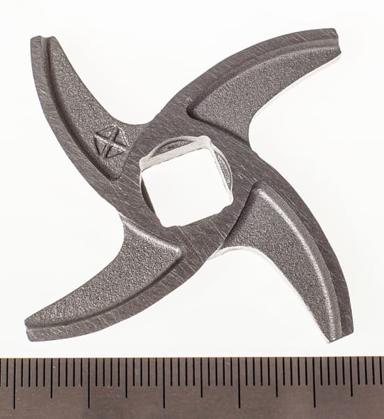 Как мясорубка она достаточно надежна, справляется с очень жилистым мясом, перерубает даже диафрагмальные грубые пленки, что редко получается у других моделей. Три решетки позволяют делать фарши разных помолов, а нож острый и имеет достаточную толщину для последующей заточки.