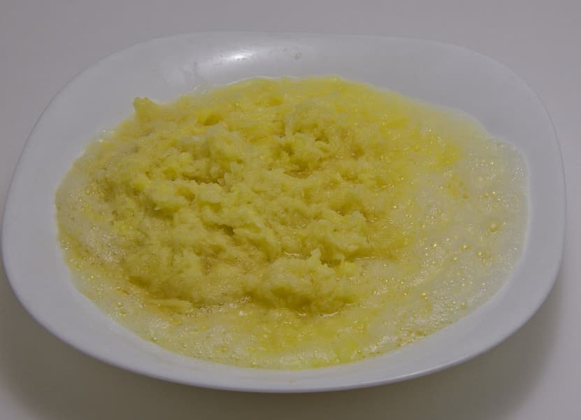 Средняя терка вела себя несколько хуже. Она забивалась нарезанной картофельной стружкой и начинала тереть с трудом. Приходилось несколько раз останавливать мотор и доставать натертую картошку из блока.
