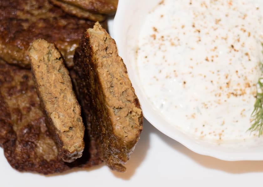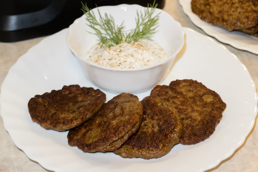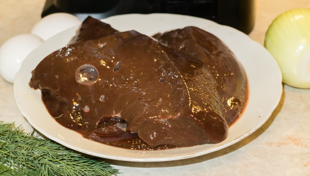Чтобы оладьи получились максимально мягкими, печень мы перерабатывали через решетку со средним диаметром отверстий. Плотные пленки с продукта, по возможности, были удалены, тонкие оставлены.