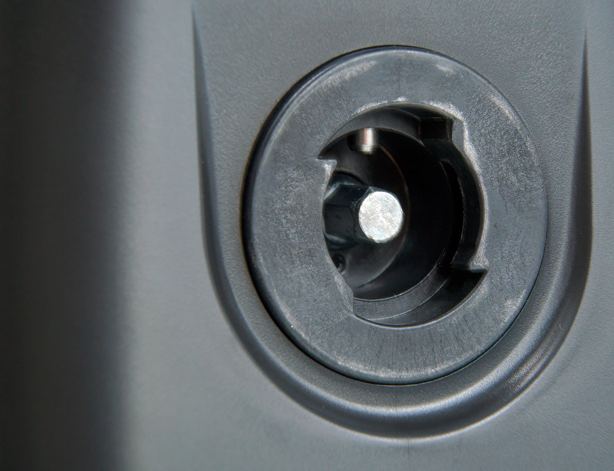 С левой стороны фиксируются насадки. Муфта приводного вала пластиковая, сам вал — металлический. Насадки фиксируются на валу с помощью соединения байонетного типа.