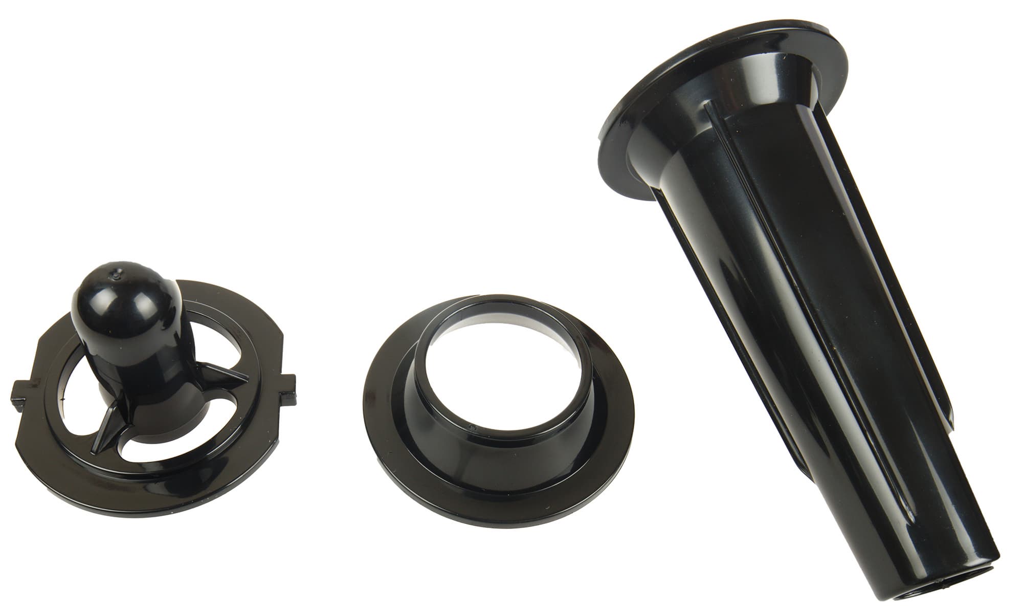 Насадка для нарезки овощей и других продуктов представляет собой отдельный корпус с толкателем и металлическим цилиндром, который, вращаясь, измельчает продукты. Размер загрузочного отверстия 5×5 см — в него легко поместится крупная морковь или четвертинка яблока. Для того чтобы зафиксировать терку внутри корпуса, следует просто совместить отверстия на дне цилиндра с выступами на валу корпуса.