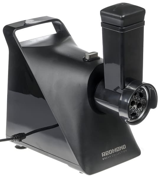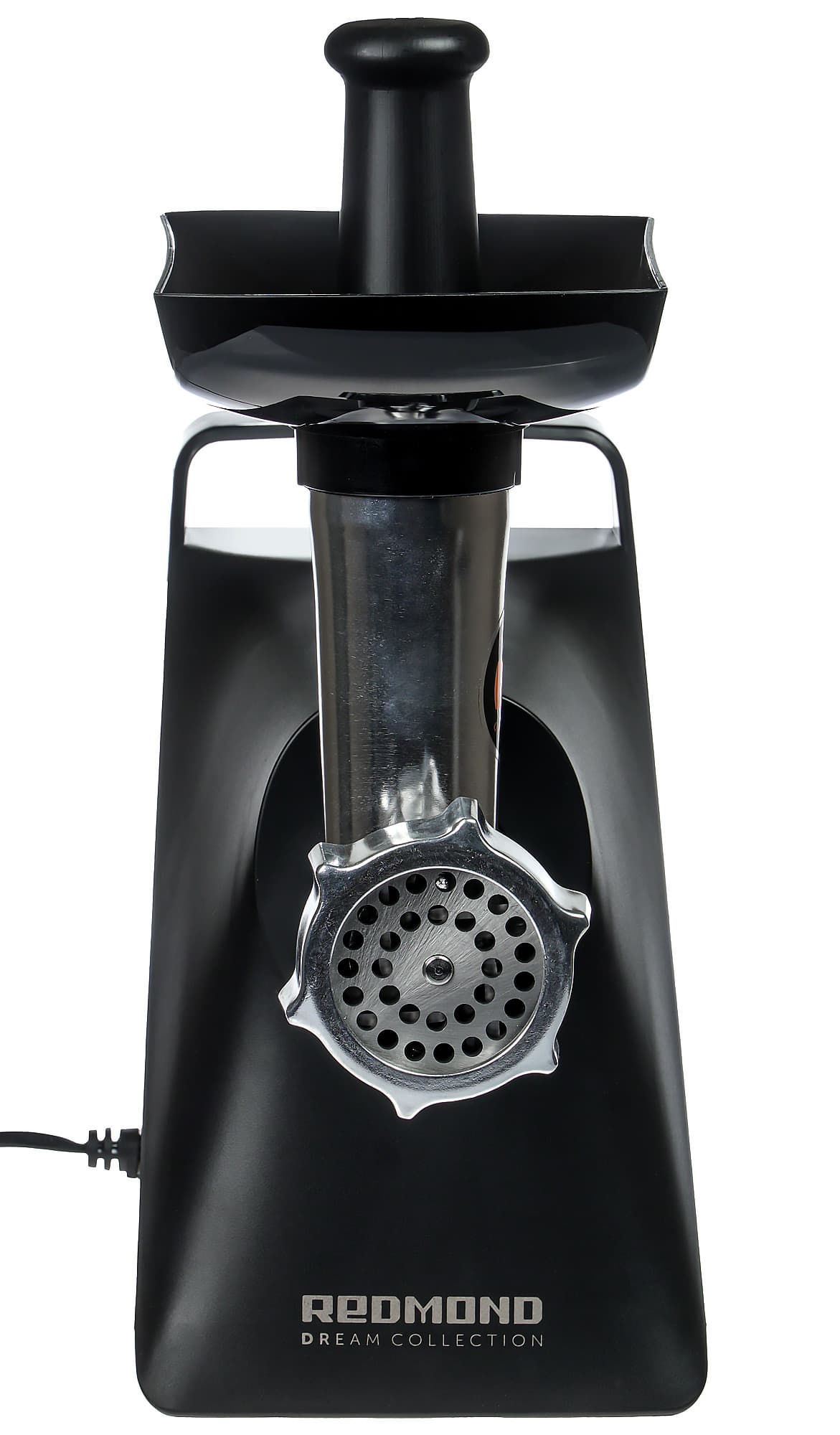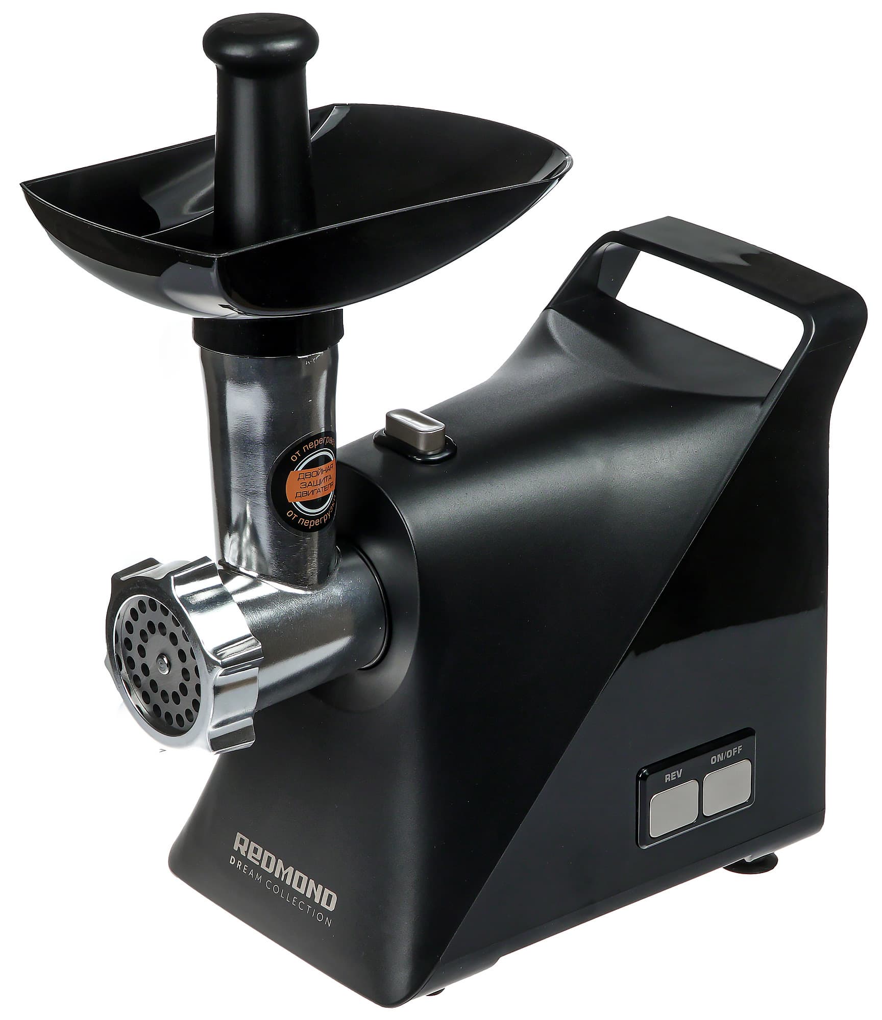 Мясорубка Redmond RMG-1244-6 оставила впечатление прибора, который хорошо справляется с заявленными функциями при весьма невысокой цене. Прибор нейтрально выглядит, устойчивый моторный блок не сдвигается при надавливании на кнопки, аксессуары быстро и интуитивно понятным образом готовятся к работе. Все неметаллические аксессуары разрешено мыть в посудомоечной машине. Мощности мотора и остроты ножей хватает для переработки жилистой говядины. Отметим, что в комплект входят два наиболее востребованных перфорированных диска — с большим и средним диаметром отверстий.