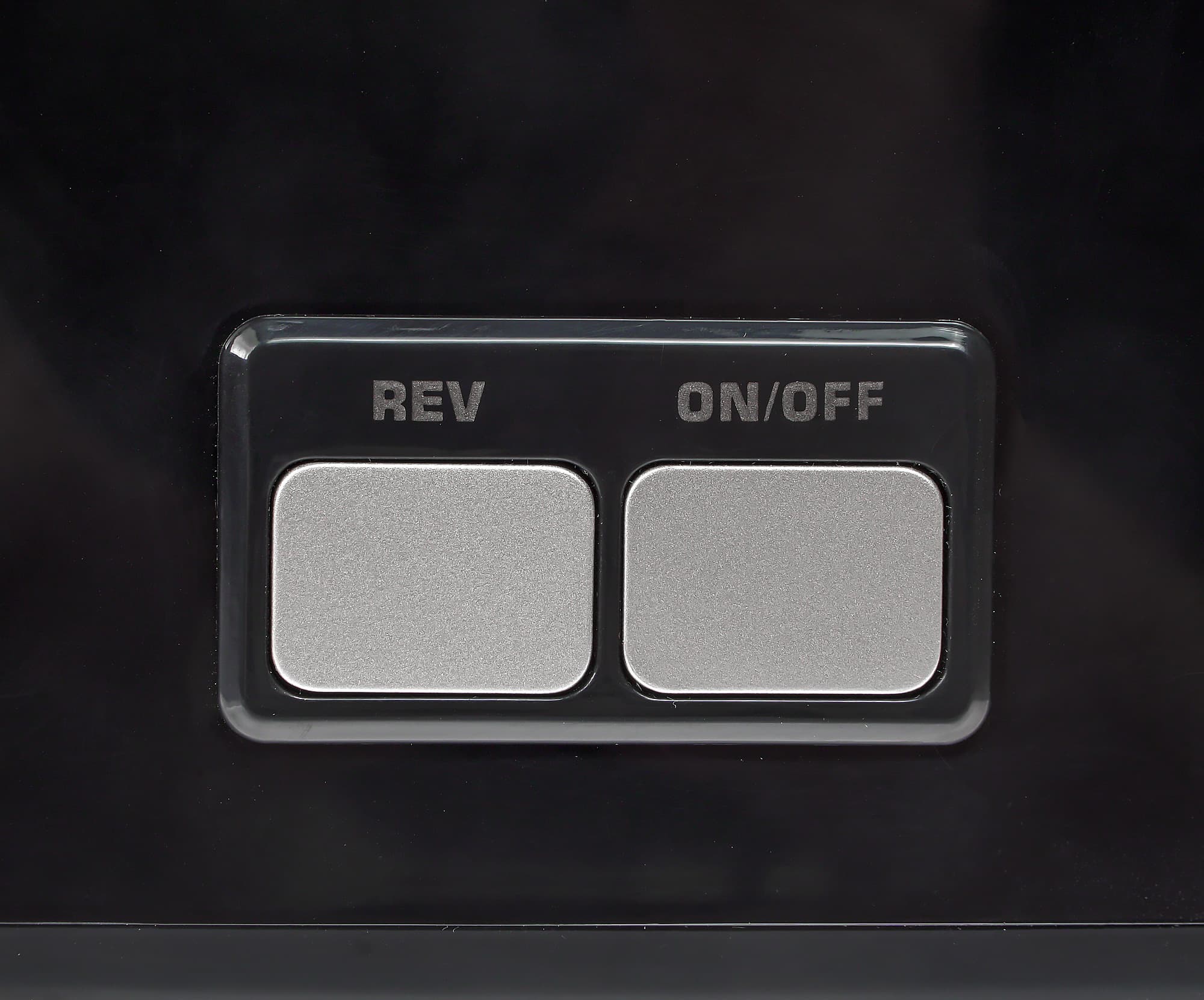 Управлять работой Redmond RMG-1244-6 можно с помощью двух кнопок: «On/Off» и «Rev». Первая, соответственно, запускает и, при повторном нажатии, останавливает работу. При необходимости запустить обратный ход следует надавить и удерживать кнопку «Rev».