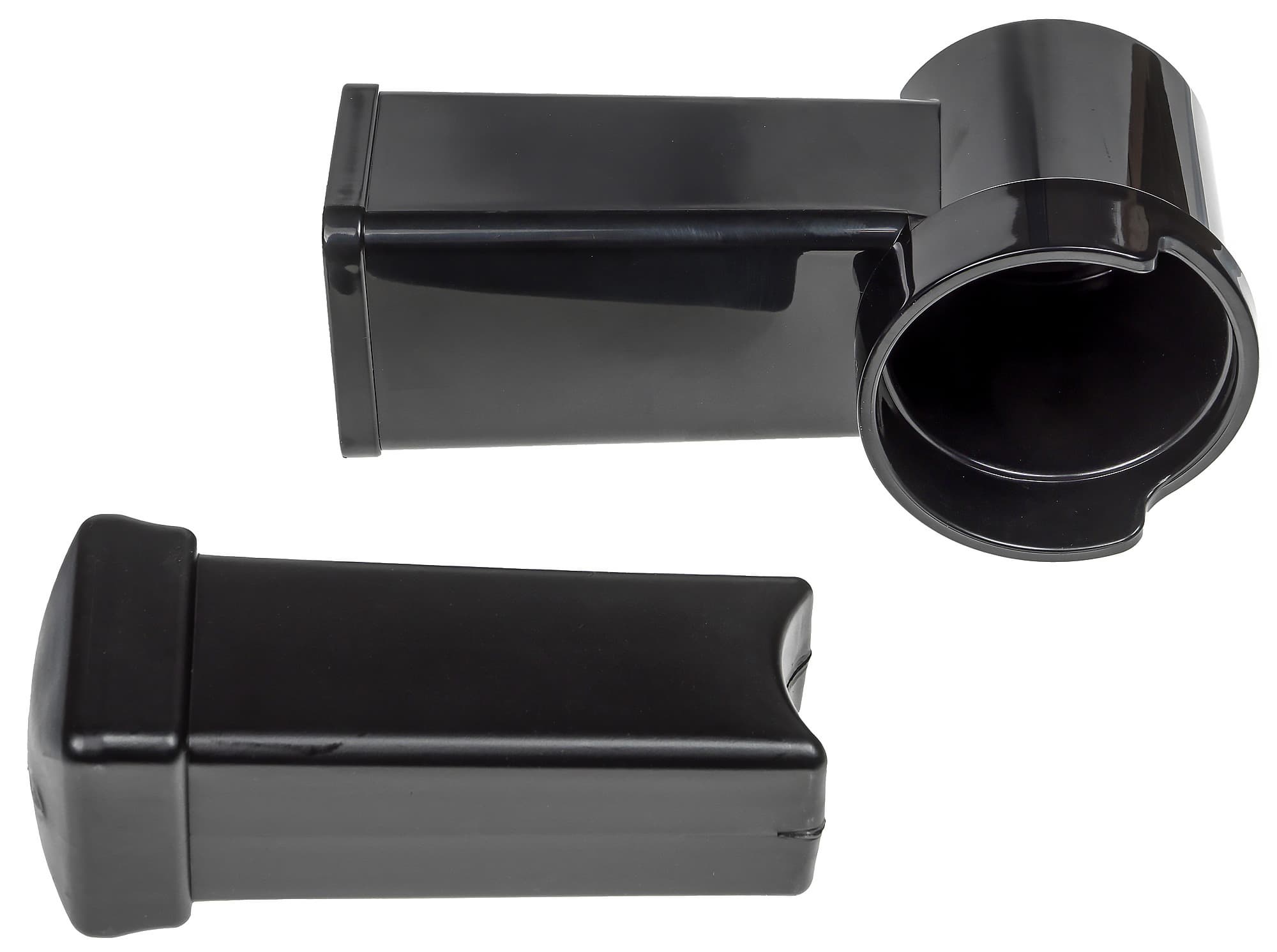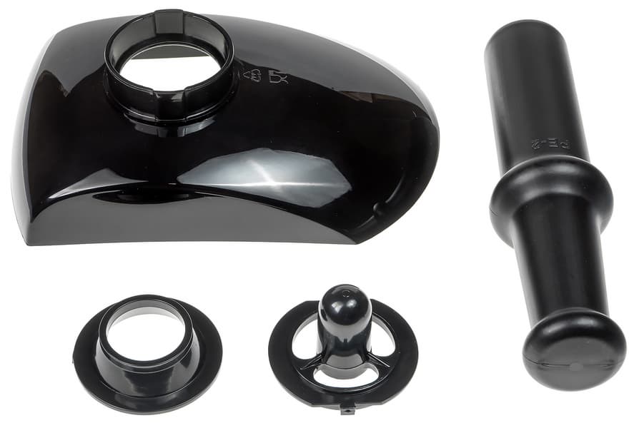 Дополнительные аксессуары насадки-мясорубки (толкатель, загрузочный лоток и насадки для изготовления кеббе и колбасок) изготовлены из черного пластика. Лоток устанавливается в неподвижности на загрузочном отверстии, а значит, не будет вращаться вокруг горловины во время работы. Толкатель с высоким держателем удобно располагается в руке. Насадки для изготовления колбасок и кеббе состоят из основания и, собственно, формующей насадки.