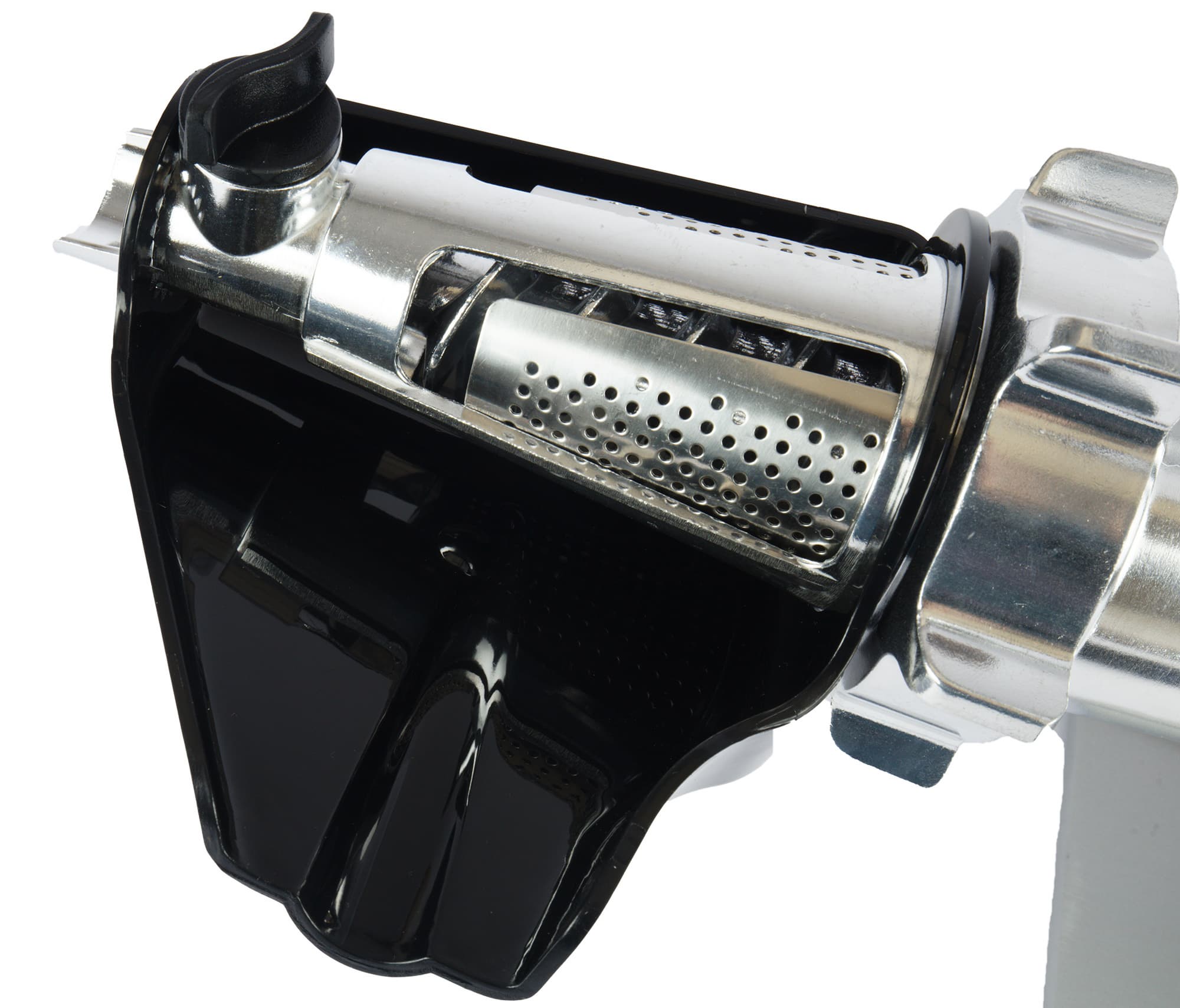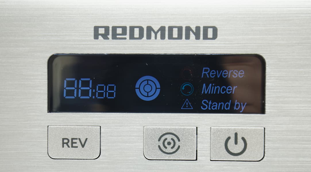 Корпус RMG-M1250-8 выглядит стильно и дорого, дизайнер постарался, и в высокую цену мясорубки явно заложена часть его зарплаты. Но хотелось бы отметить и работу инженера. Добраться до редуктора мы не смогли, но оценили, как тихо работает мясорубка даже в самые напряженные моменты.