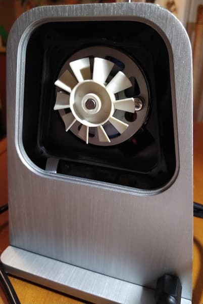К сожалению, разобрать Redmond RMG-M1250-8 не удалось: винты на корпусе оказались закручены так крепко, что отвинтить их мы не смогли. Шлицы были дороги нам как память, так что наращивать и так уже немалые усилия мы не стали. Добраться получилось только до вентилятора.