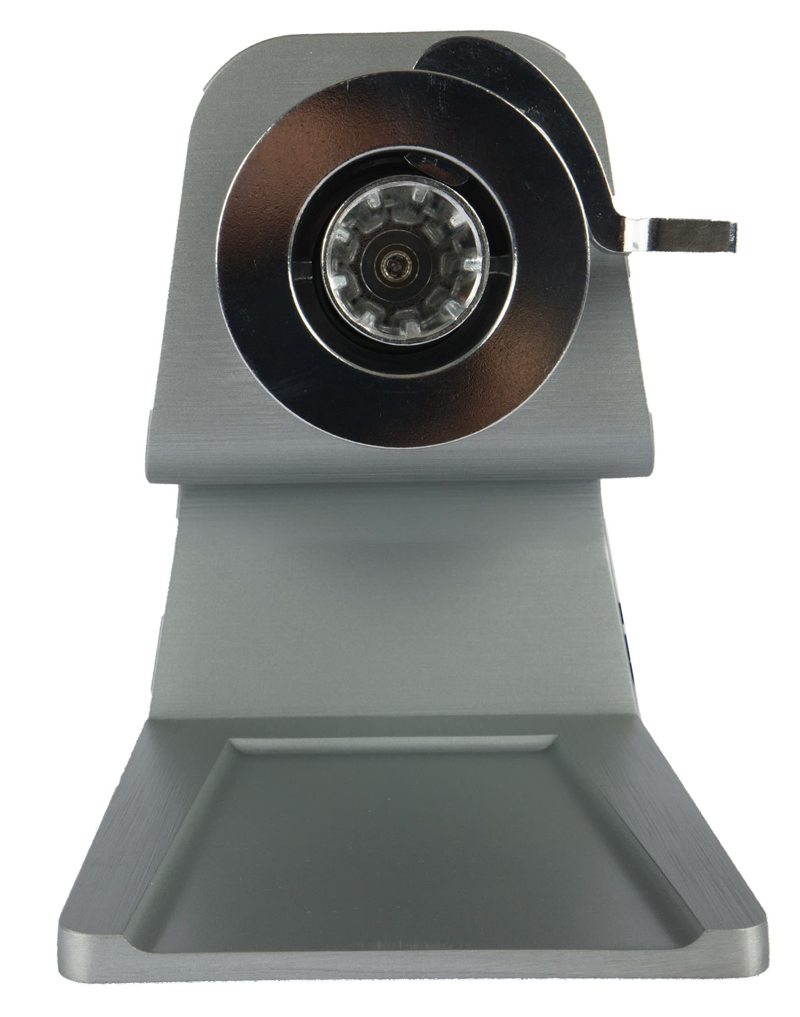 Насадки вставляются во внушительное металлическое гнездо и закрепляются рычагом (его надо опустить вниз, как на фото).