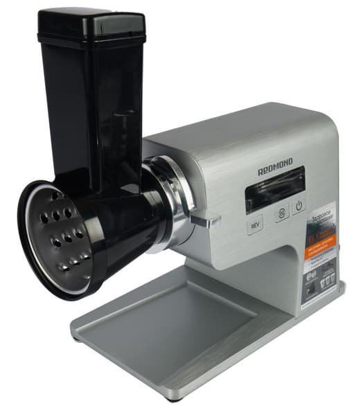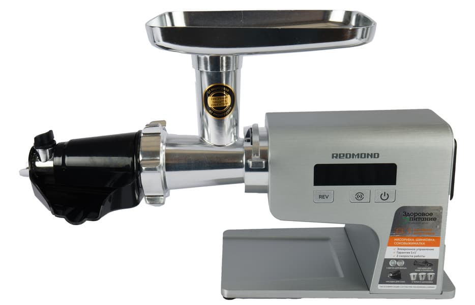 Redmond RMG-M1250-8 сочетает функции трех приборов: мясорубки, овощерезки и соковыжималки. Традиционно для таких многостаночников, результаты тестирования неровные. Как мясорубка устройство проявило себя очень неплохо, показав не только приличную производительность (хоть и не соответствующую заявленной), но и завидную выносливость: сложная жилистая говядина была изрублена быстро и беспроблемно. Пластиковый корпус овощерезки выглядит посредственно, особенно на фоне добротного стального моторного блока прибора, но с работой своей в большинстве случаев эта насадка тоже справляется хорошо, хотя некоторые продукты ей не поддаются. От соковыжималок в составе мясорубки мы традиционно не ждём чудес, так что «всё как у всех».