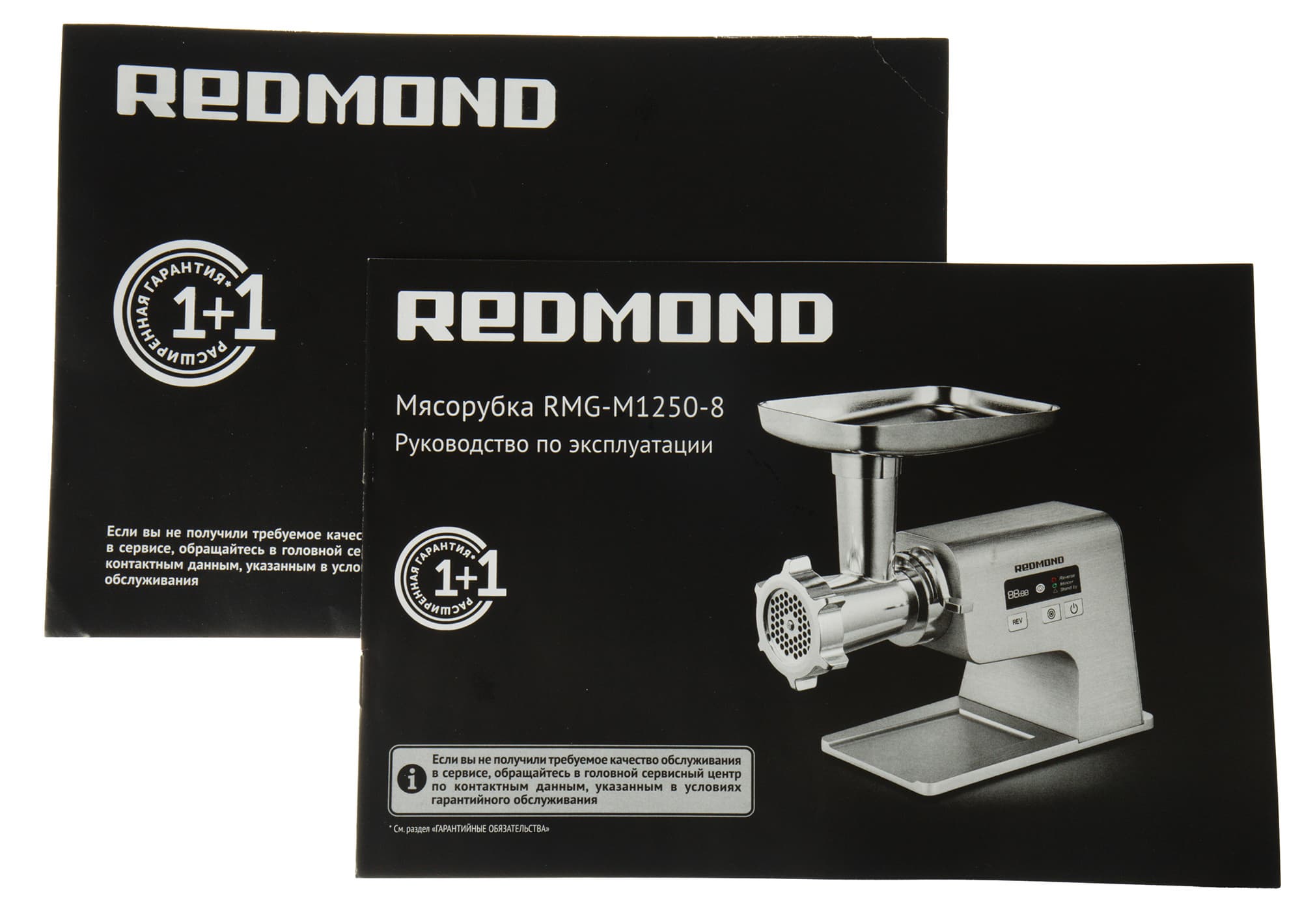 Руководство по эксплуатации Redmond RMG-M1250-8 — брошюра размером в половину листа А4, напечатанная на тонкой глянцевой бумаге. Инструкция состоит из двух частей: в первой с помощью иллюстраций показывается, как собирать прибор и мыть его элементы; во второй мы наконец видим буквы, которыми описываются меры предосторожности, принципы и особенности работы каждой ипостаси устройства и прочие необходимые пользователю сведения.
