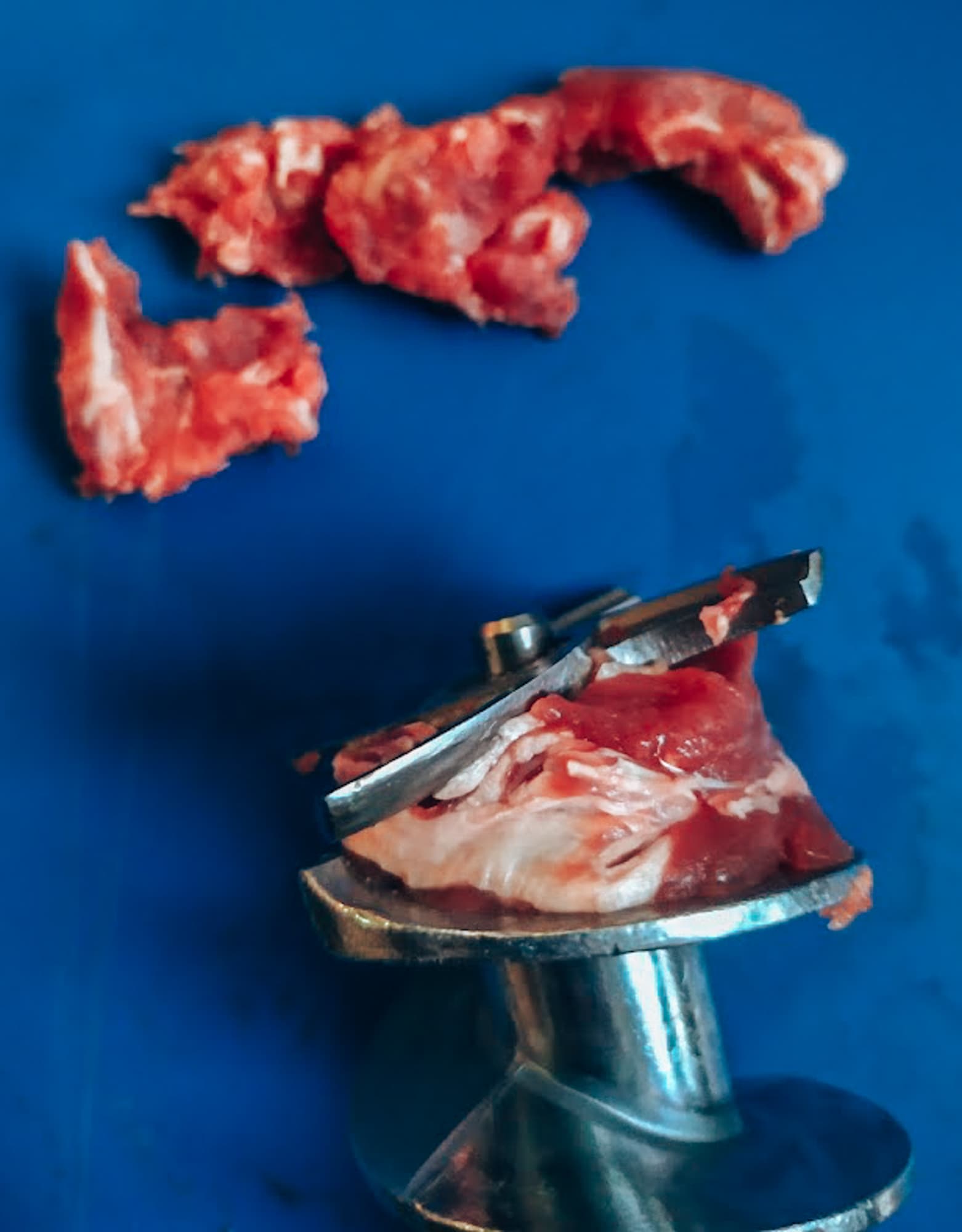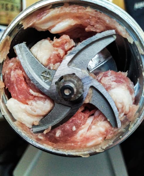 Еще один наш любимый тест: взять мясо, совсем не предназначенное для мясорубки, и посмотреть, что будет. Мы использовали решетку с крупными отверстиями и работали на второй скорости.