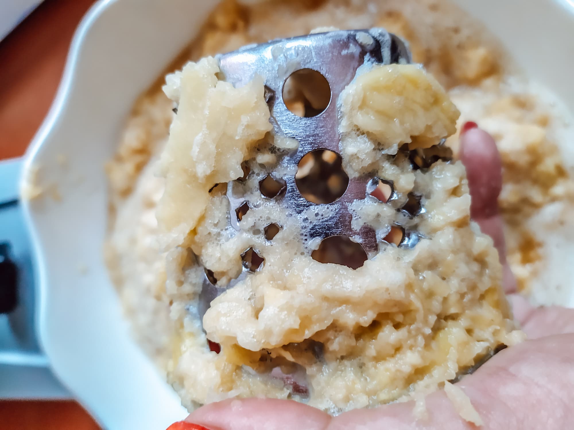 На мелкой терке решили измельчить картофель для драников. 850 граммов сырой картошки Redmond RMG-M1250-8 измельчала чуть больше двух минут, правда пару раз пришлось прерваться: картофельная масса скапливалась в терке, и отправлять ее в миску приходилось руками.