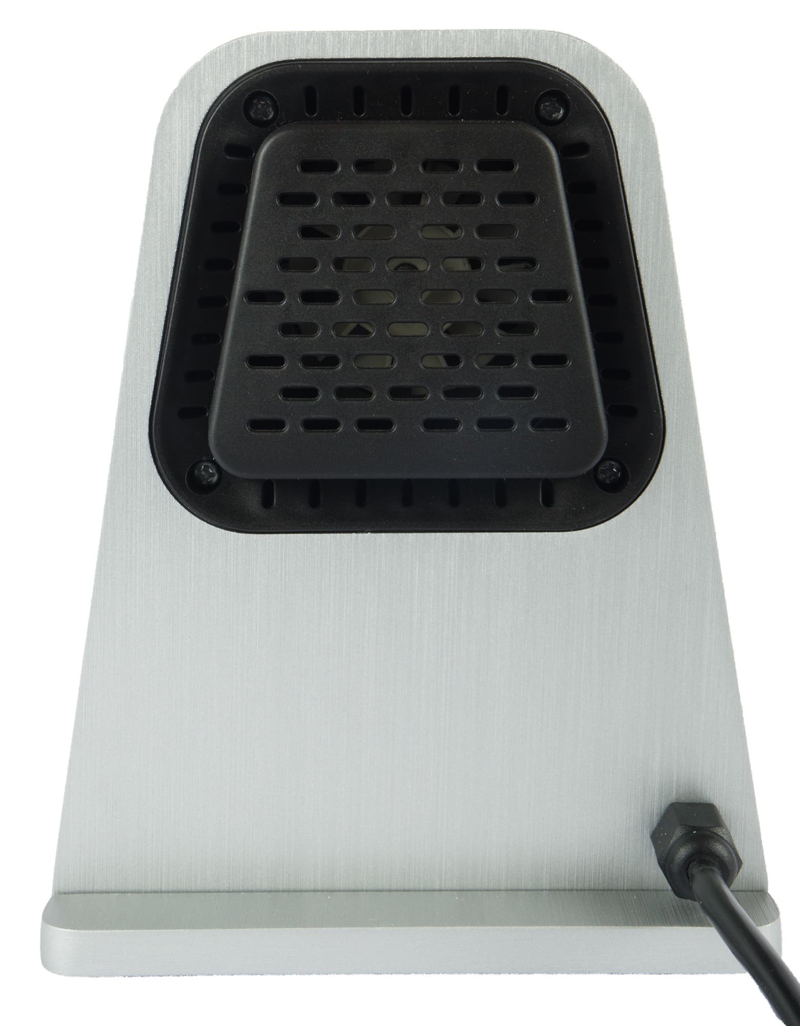 На задней части корпуса — большая вентиляционная решетка и место выхода электрошнура.