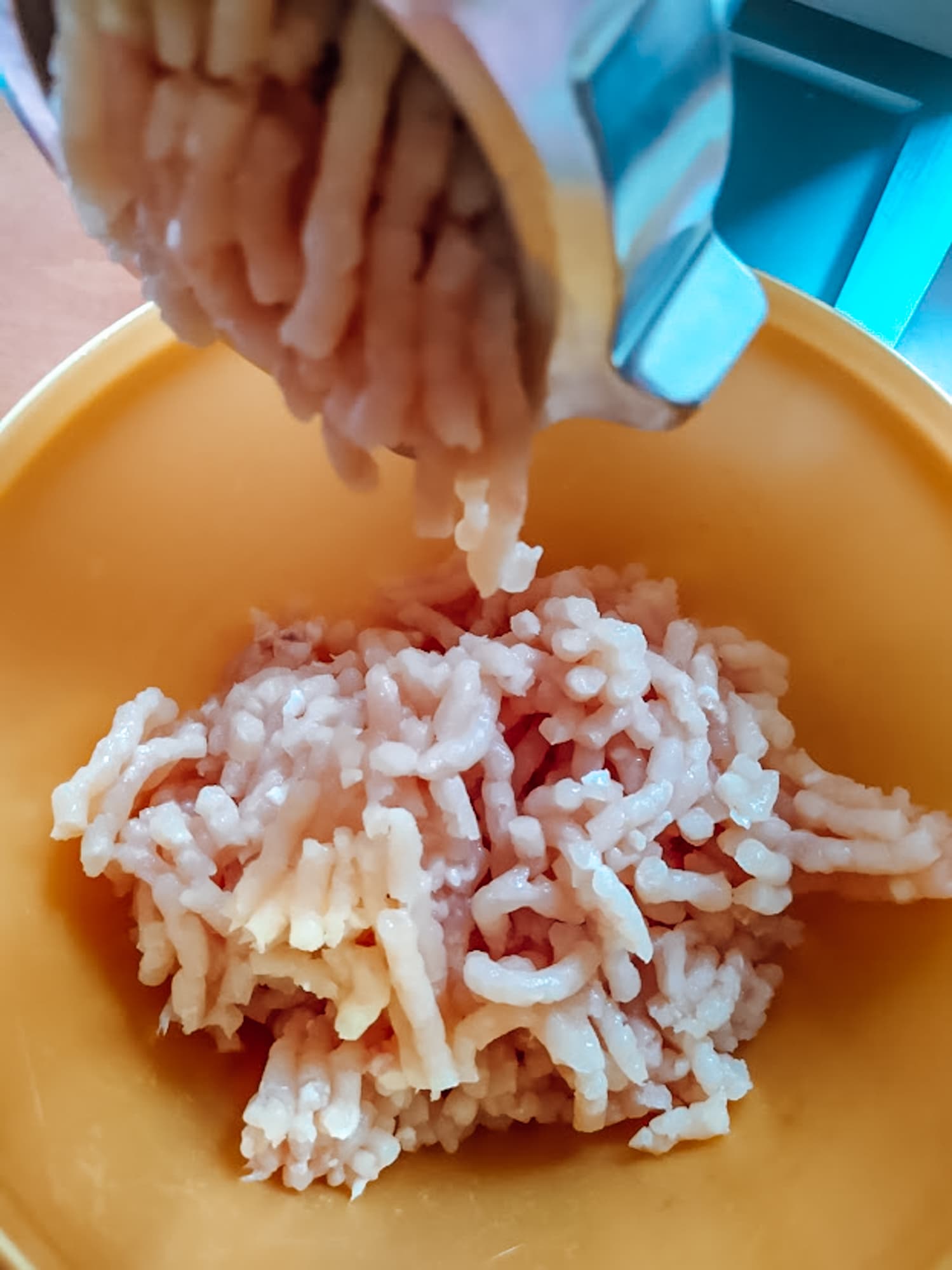 Первым делом в мясорубку отправилась курица, полкило мяса было изрублено за 20 секунд на первой скорости.