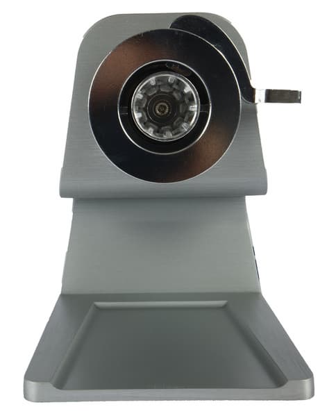 Насадка вставляется в блок и закрепляется поворотом, цепляясь специальными отверстиями за изогнутые металлические выступы. Чтобы вынуть терку, ее нужно повернуть в обратном направлении, держась за внутреннюю гладкую поверхность.