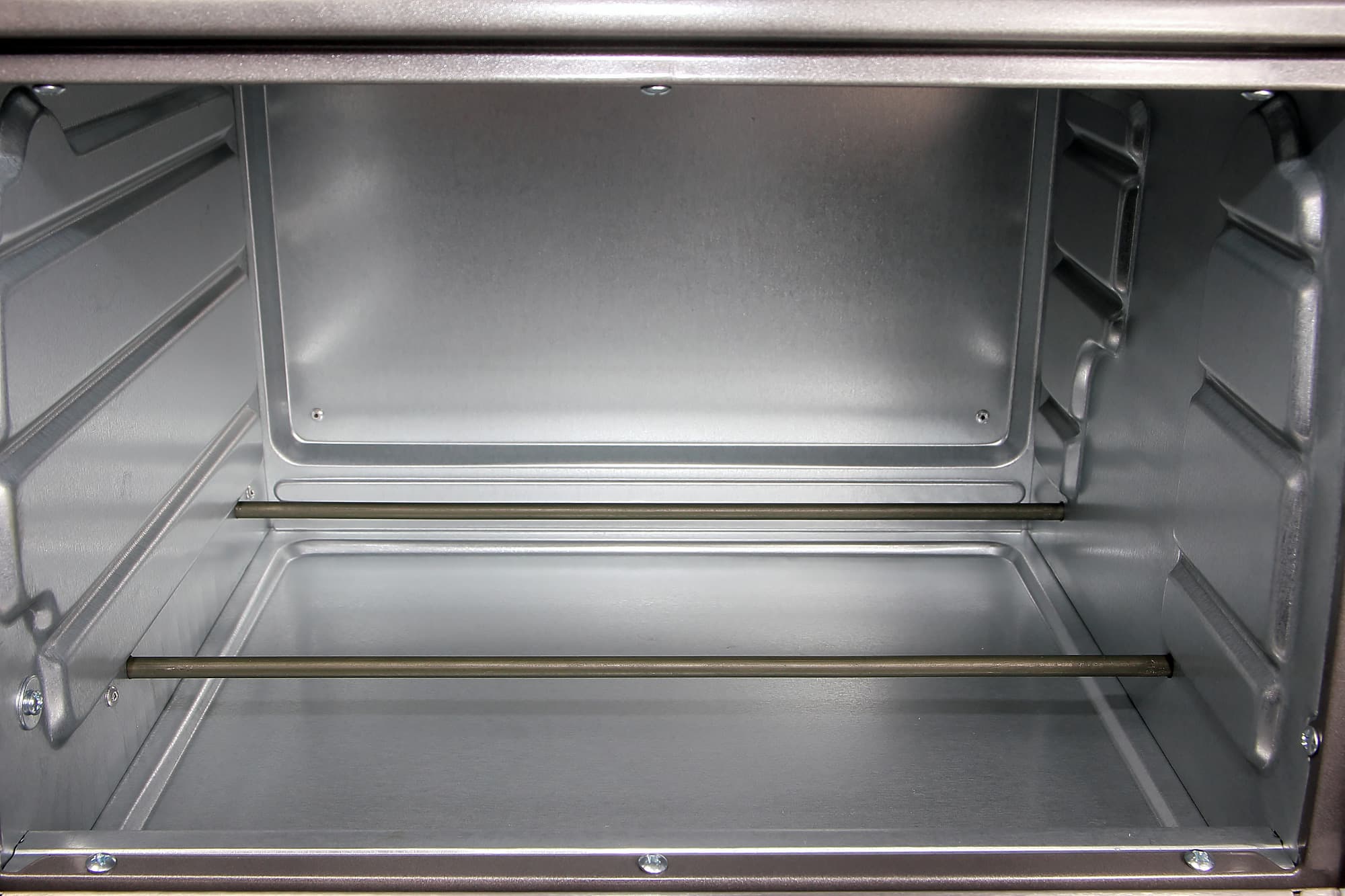 Сначала мы сполоснули противень и вытерли насухо, затем включили оба тэна на максимальную температуру на 15 минут. Мы были предупреждены о возможном появлении технического запаха и небольшого количества дыма, и они не замедлили явиться. После остывания прибора мы начали непосредственное тестирование, и посторонние запахи нас больше не беспокоили.