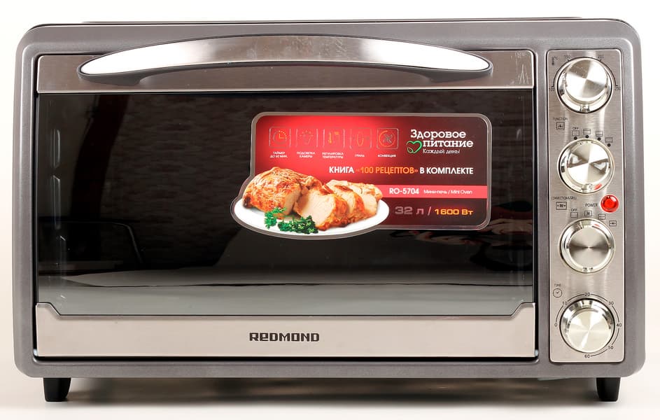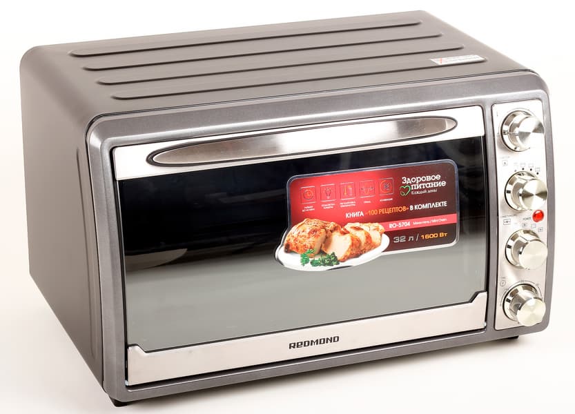 Духовой шкаф Redmond RO-5704 — мини-печь, оснащенная всем самым необходимым для приготовления пищи. В ней нет дистанционного управления или встроенных программ, зато она оборудована таймером, освещением, вертелом и конвекцией, которые на наш взгляд, представляются ничуть не менее важными функциями для тех, кто хочет использовать все возможности хорошей большой духовки в компактном варианте.