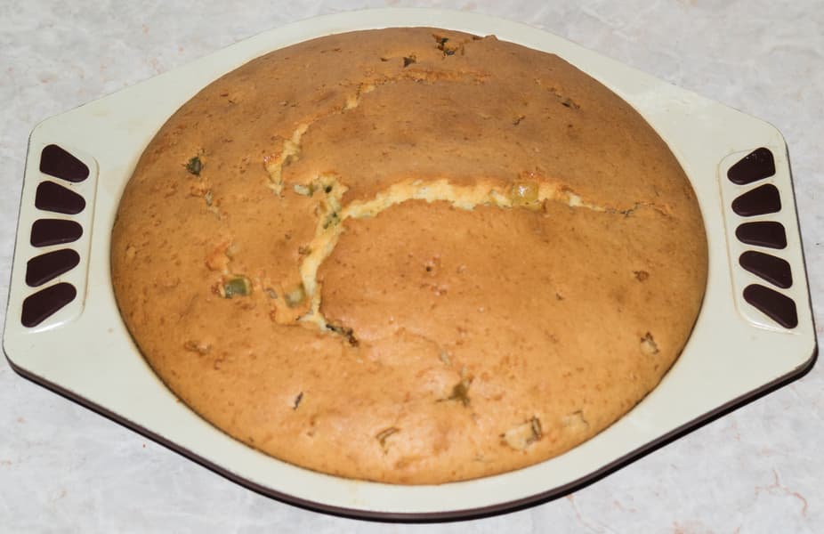 Этот простой кекс мы решили приготовить, чтобы удостовериться в равномерности нагрева тэнов. Поверхность пирога с сыром нам показалась прожаренной с разной степенью интенсивности. Параллельно оценим, как ведет себя духовка при выпечке высоких пирогов или бисквитов, не сгорит ли, когда изделие увеличится в объеме, его верхушка.
