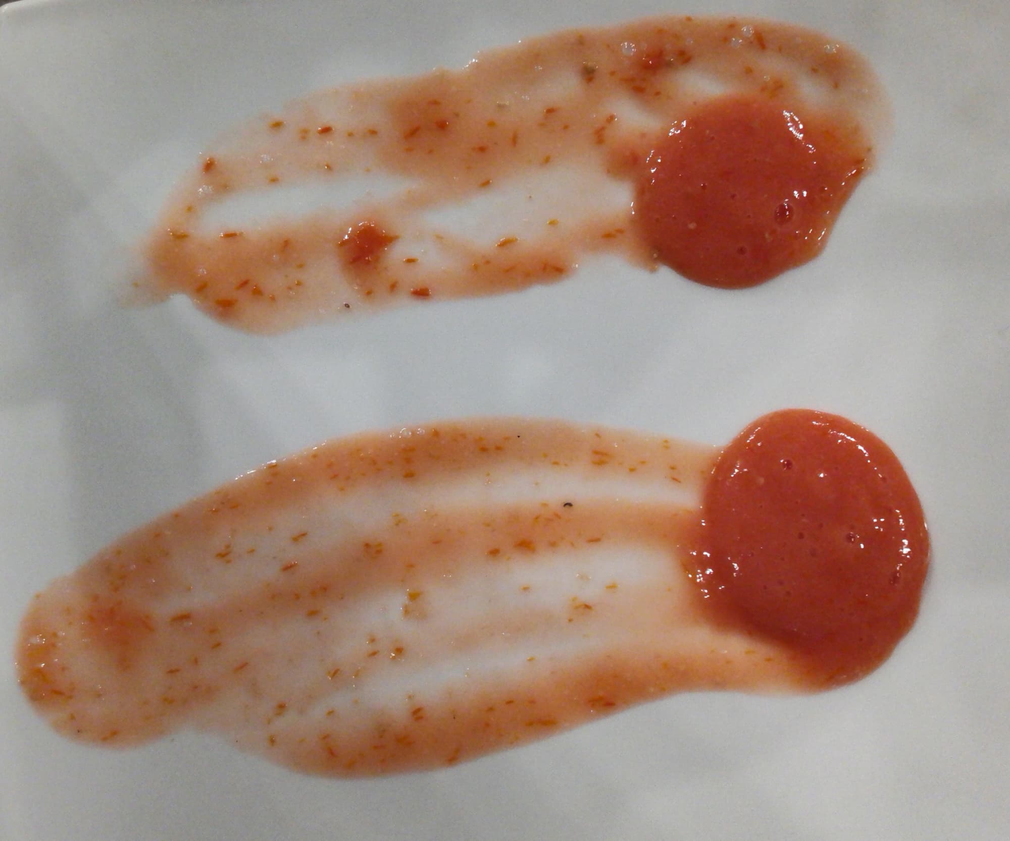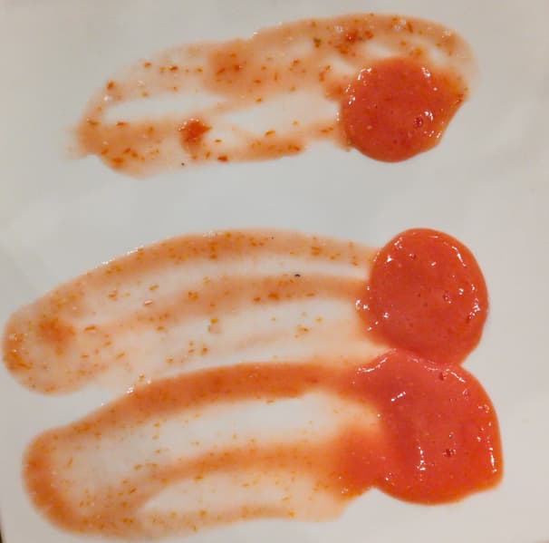 Видно, что при измельчении в течении двух минут фрагменты семян практически отсутствуют, а кожица измельчена очень мелко. Дальнейшие манипуляции с томатной массой существенно ситуацию не изменили.