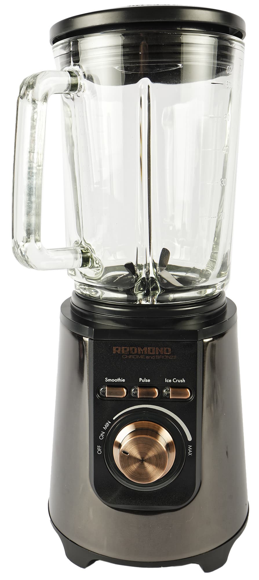 У нас на тестах красивая модель Redmond — блендер RSB-CBM3400, сделанный с акцентом на дизайн и долговечность. Попробуем его в деле.