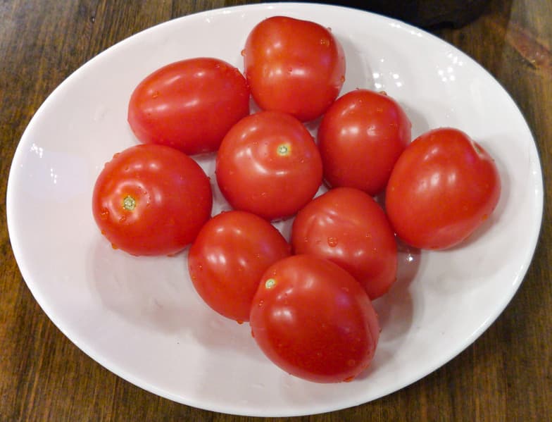 Чтобы сделать предварительные выводы о возможностях блендера, мы начали с измельчения томатов. Было взято 600 граммов жесткокожих томатов с крупными семенами. Мы порезали их пополам, плодоножку удалили.