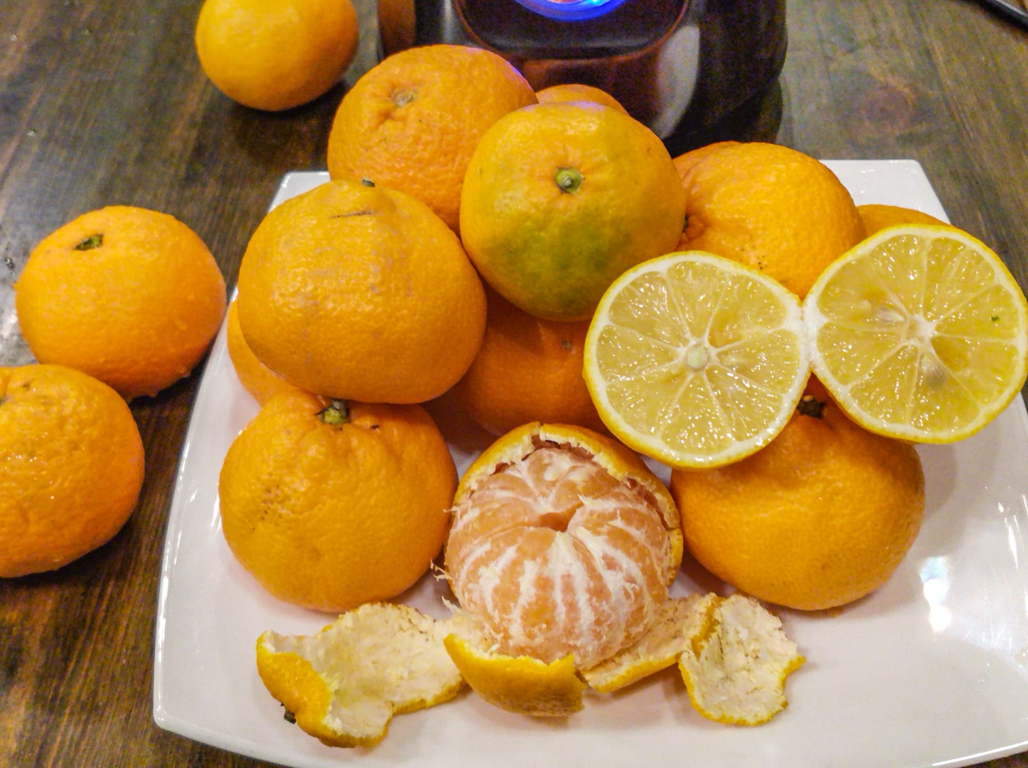 Для напитка мы взяли абхазские мандарины и один лимон. С мандаринов сняли шкуру.