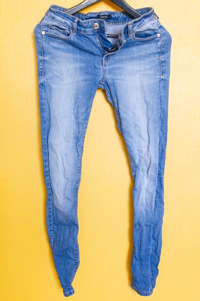 Джинсы намерено были доведены до неприличного состояния скручиванием и сушкой на батарее.
