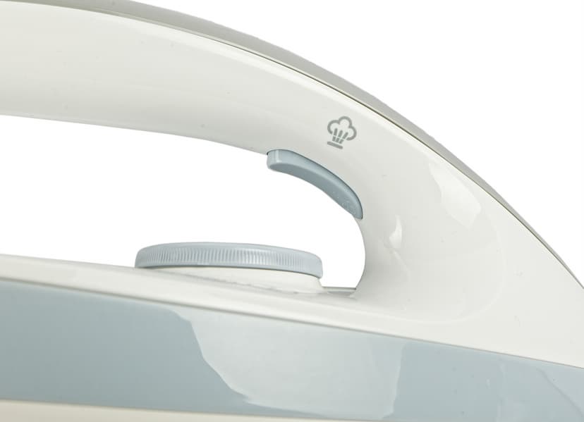 Утюг стандартной формы и размеров весит 920 граммов. С внутренней стороны ручки находится кнопка подачи пара. Под ней на корпусе утюга расположено колесо-регулятор нагрева подошвы, а рядом с ним индикатор нагрева. Место соединения шланга подачи пара с утюгом защищено гибким 5,5-сантиметровым кожухом.