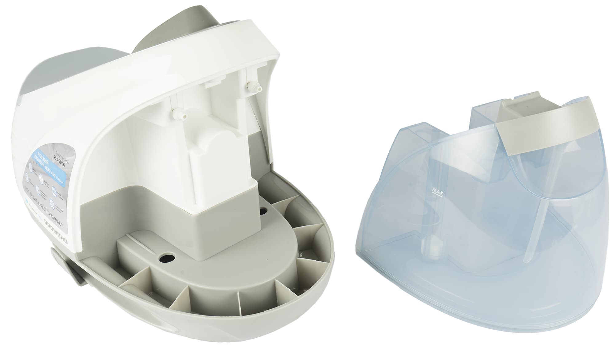 Съемный резервуар для воды объемом 1,8 л изготовлен из прозрачного пластика.
