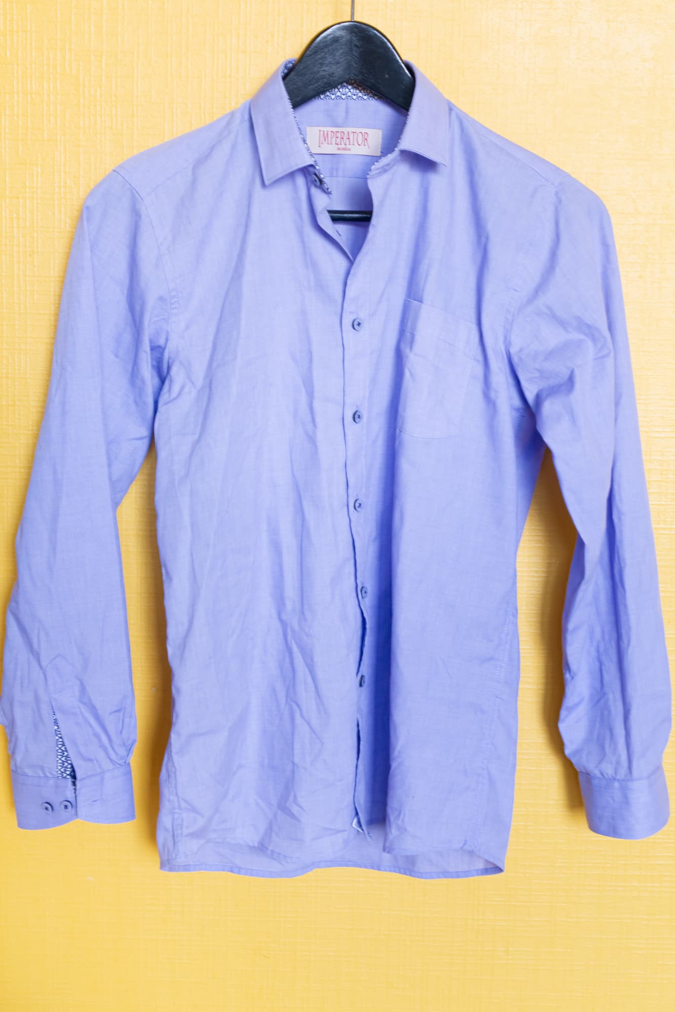 Рубашка из сложного для глажения и отпаривания материала была сильно измята стиральной машинкой и пролежала в шкафу в таком виде длительное время.