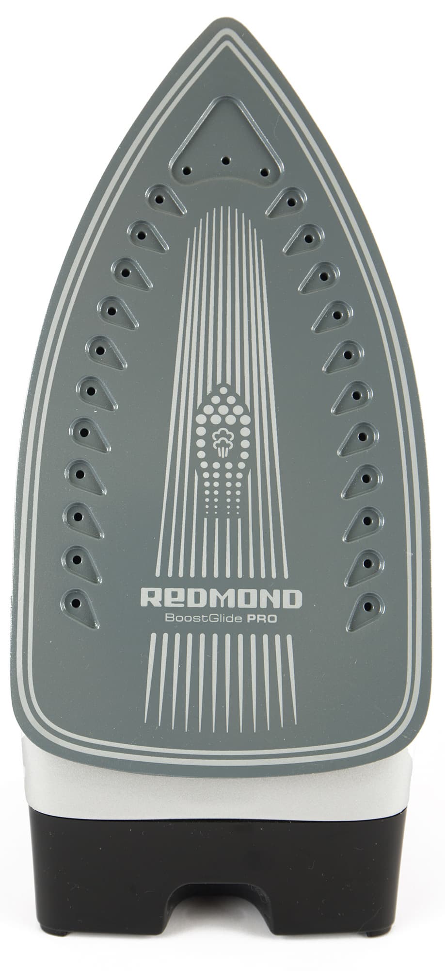 У подошвы с керамическим покрытием классическая каплеобразная форма с зауженной вершиной. Покрытие нанесено ровно, при осмотре никаких сколов и зазубрин мы не обнаружили. Отверстия выхода пара расположены в один ряд вдоль боковых граней подошвы, с тремя отверстиями в вершине.