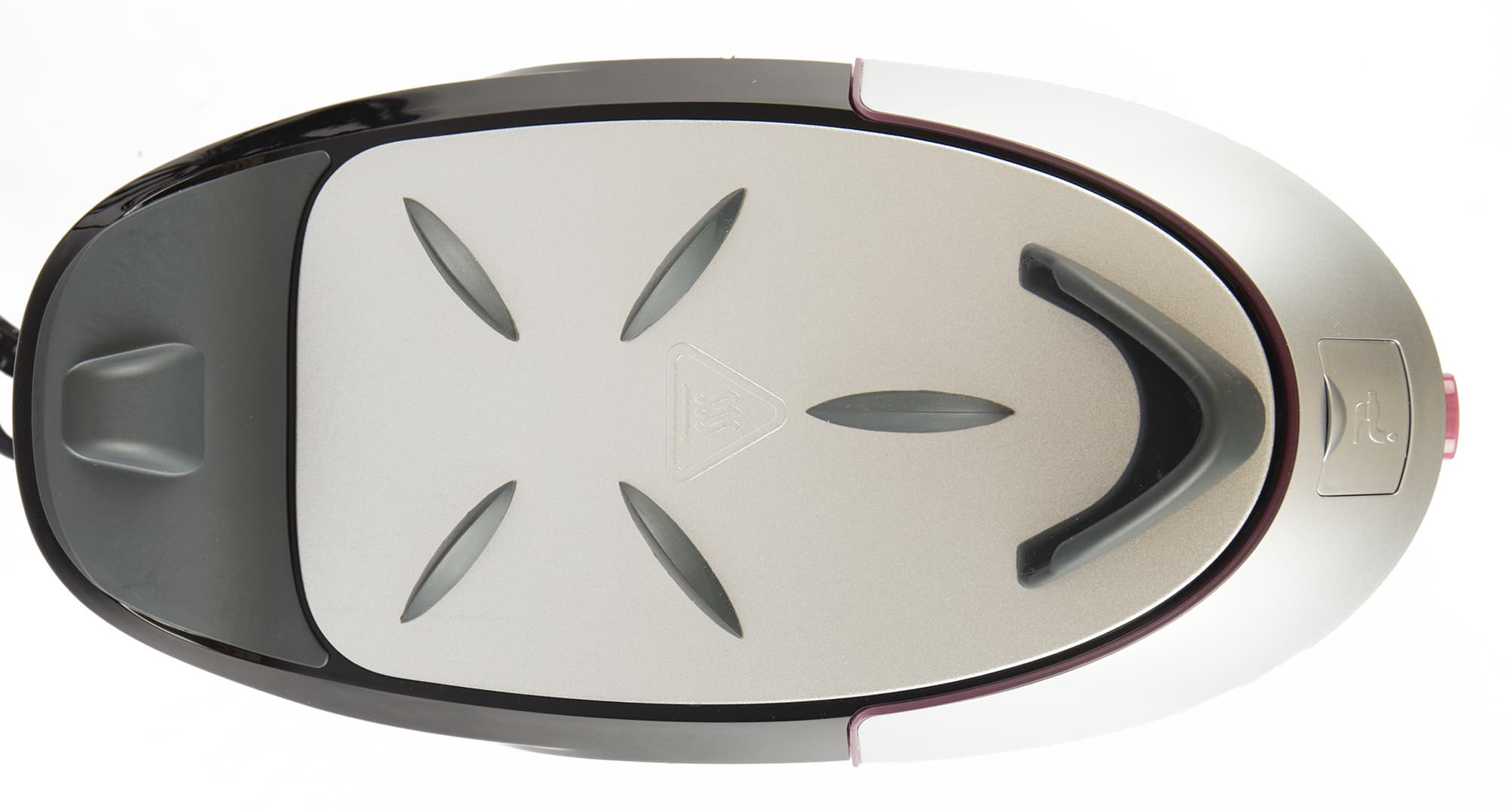 Основание утюга выполнено в форме, напоминающей треугольник. И несмотря на отсутствие каких-либо противоскользящих накладок, утюг достаточно устойчиво располагается на поверхности. Место соединения шланга подачи пара с утюгом защищено гибким 3-сантиметровым кожухом, предотвращающим повреждение кабеля от перегиба.