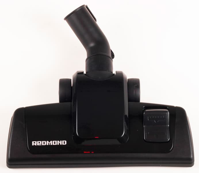 Высота насадки составляет 80 мм, ширина — 284 мм. Входной жесткий патрубок соединен с корпусом насадки так, что они могут двигаться друг относительно друга примерно на 35-40 градусов. Кроме того, насадка может изменять положение относительно патрубка для более плотного примыкания к полу. Облегчают перемещение насадки по поверхности крупные ролики из твердого пластика по бокам корпуса.